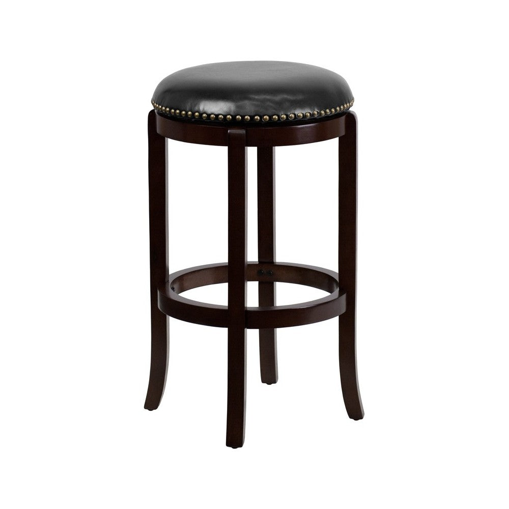 29'' High Backless Cappuccino Wood Barstool with Black LeatherSoft Swivel Seat