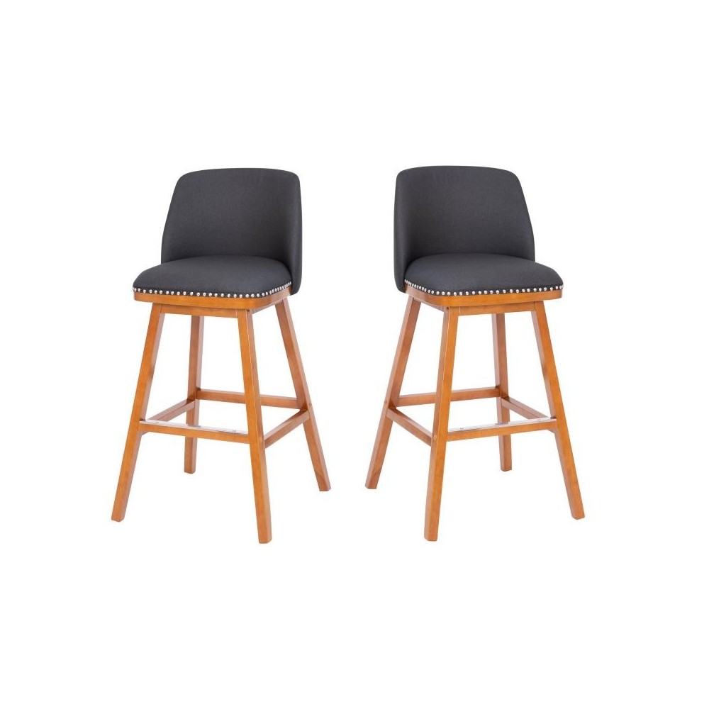 Let the sophisticated style of this set of 2 commercial grade barstools, featuring soft and durable faux linen upholstery with decorative nail trimming, lend a touch of old world elegance and comfort to your home or business. The solid wood frame and legs are strong and sturdy and hold up to 300 lbs. static weight. The contoured mid-back design, foam padded seat, and integrated footrest invite you to sit back and get comfortable over drinks or dinner. To ensure smooth gliding and floor protection, protective felt pads have been added and this stool wipes clean with a dry cloth. Quick and easy assembly rounds out the favorable attributes this dining stool has to offer any environment. [CH-192162X000-30-CHAR-GG]