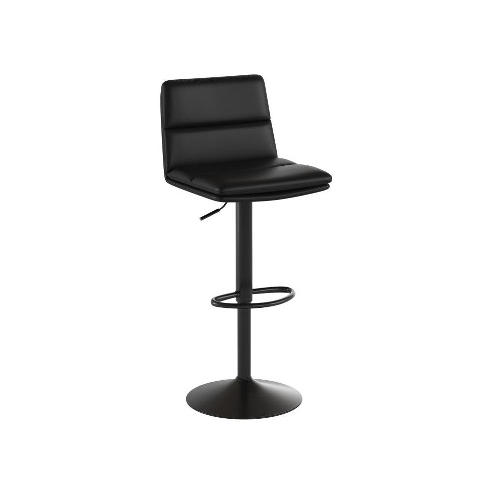Modern style and luxurious finishings make this set of 2 adjustable height barstools the perfect seating for your home or business. Boasting attractive channel stitched detailing with soft and durable LeatherSoft upholstery, this mid-back bar stool is an excellent addition to your kitchen, dining room, entertainment areas, restaurants, office, cafe, workshop, and more. The height adjustable 360 degree swivel seat adjusts from counter to bar height with the handle located below the seat. The sturdy steel base holds up to 300 lbs. static weight while the integrated footrest not only complements the chair's modern design but also relieves pressure from the legs. A rubber ring prevents damage to hard flooring surfaces and assembly takes 10 minutes or less per stool. Wipe clean with a dry cloth to maintain the appearance of your new stools. [CH-202071-BK-GG]