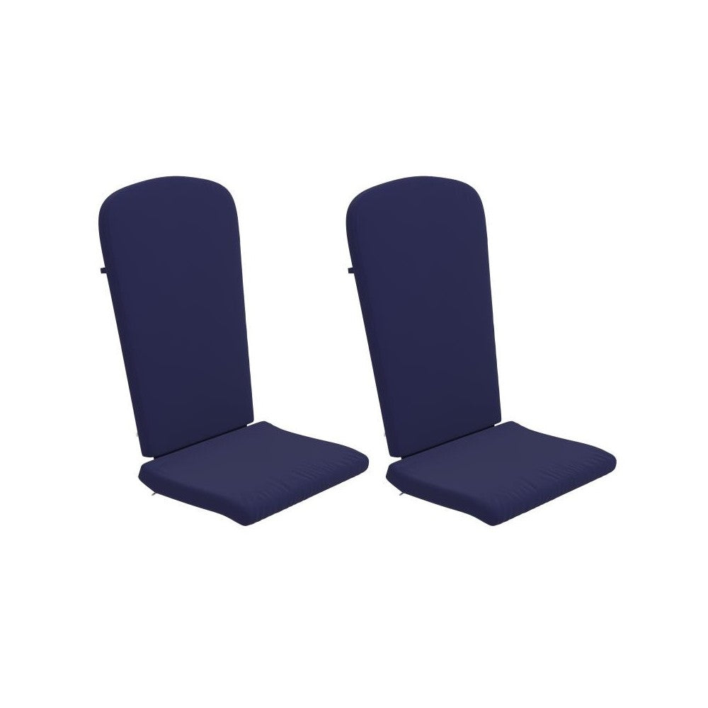 Your Adirondack chairs will be even more comfortable when you add this set of 2 padded high back cushions. These comfy 2 inch thick foam filled polyester cushions are covered with a water-resistant olefin finish for indoor/outdoor use. An elastic back strap securely fastens these cushions to your patio chairs to ensure they stay in place when you stand or sit. Use a damp cloth to wipe clean or remove the zippered covers to hand wash and air dry for a deeper clean to ensure your cushions look great all season long. [JJ-CSN14501-BL-2-GG]