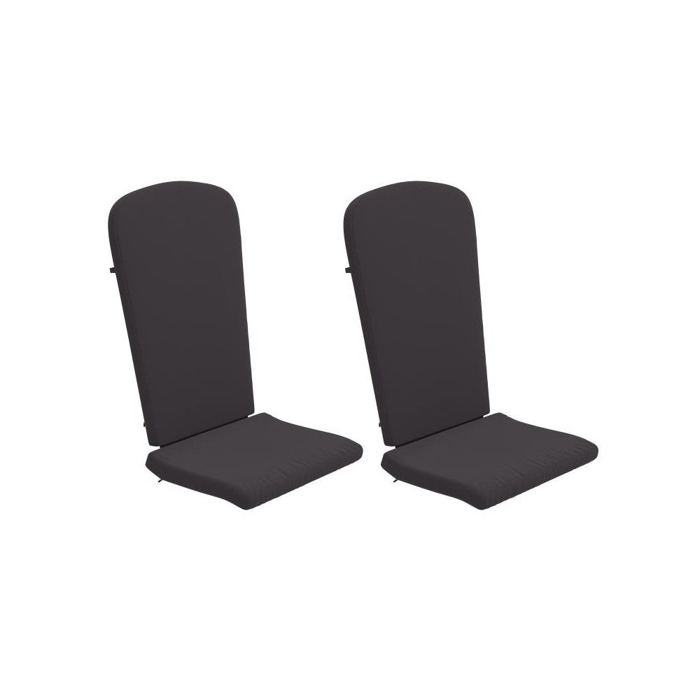 Your Adirondack chairs will be even more comfortable when you add this set of 2 padded high back cushions. These comfy 2 inch thick foam filled polyester cushions are covered with a water-resistant olefin finish for indoor/outdoor use. An elastic back strap securely fastens these cushions to your patio chairs to ensure they stay in place when you stand or sit. Use a damp cloth to wipe clean or remove the zippered covers to hand wash and air dry for a deeper clean to ensure your cushions look great all season long. [JJ-CSN14501-GY-2-GG]