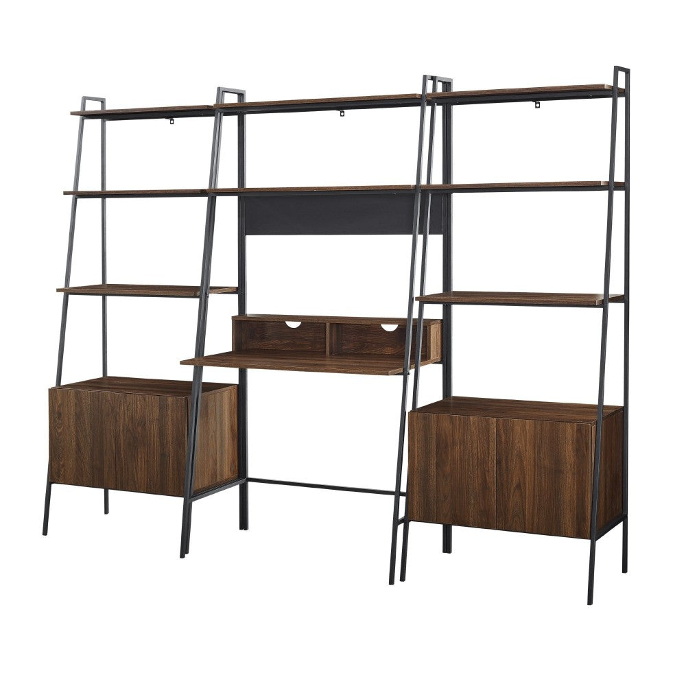The efficiency station has arrived. This three-piece industrial home office set is here for all your needs! Transform it into a daily task generator, a homework haven, or your workstation hub. Two bookcases with cabinets and a ladder desk are included for you to arrange however you like! Wall anchors keep the pieces nice and balanced and the powder-coated steel give its wooden frame a dashing two-toned look. Use the open shelving however it suits you and stage this wall unit in a living room, home office, or dining room.