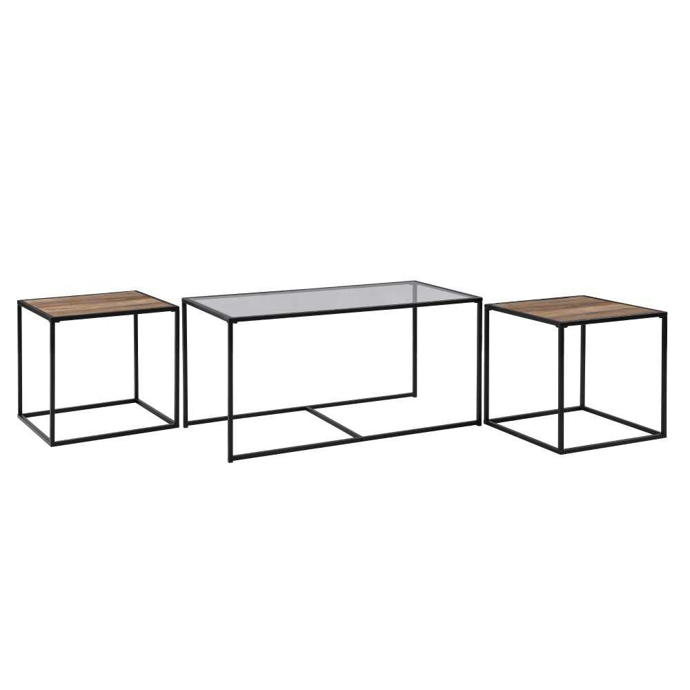 3-Piece Industrial Nesting Table Set - Glass/Rustic Oak