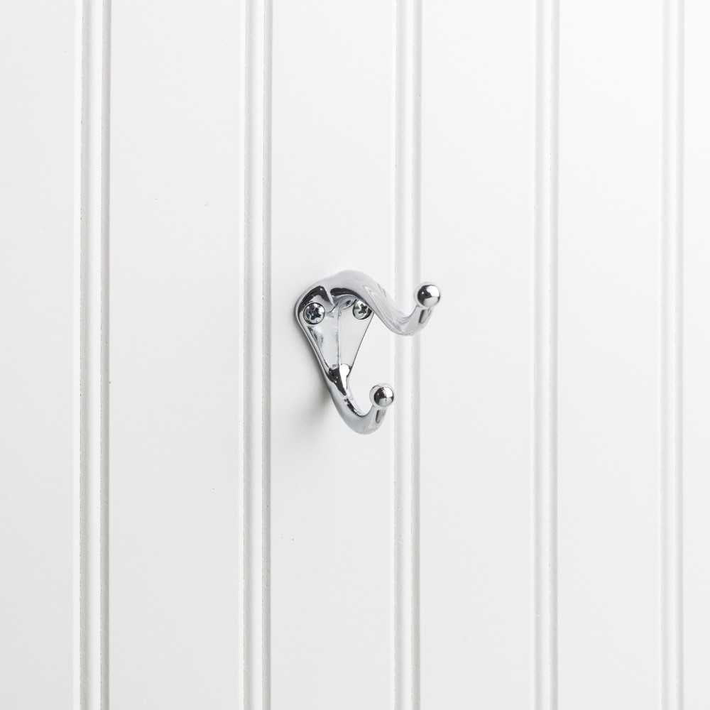 Keep your space organized with this traditional double prong ball end, wall mounted hook in Polished Chrome from Elements. Whether it's in the garage, the mudroom, or even the kitchen, the possibilities are endless. This hook is also available in two other finishes. Each hook is weight tested to hold up to 35 pounds and individually packaged to prevent damage. Packaging includes mounting screws and installation instructions.