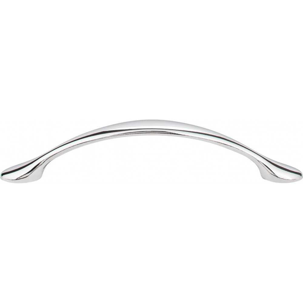 The gentle arch flowing into soft rounded feet of this Polished Chrome 6-15/16 overall length Somerset pull by Elements provides a fresh, lasting look that appeals to a variety of tastes. Available in five additional modern finishes and an additional pull length. Each item is individually wrapped to protect the item from damage. Attachment hardware is included.