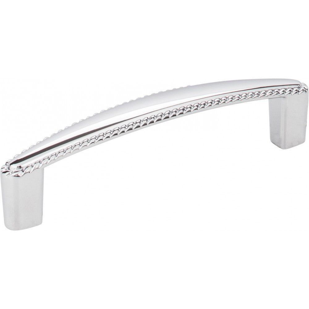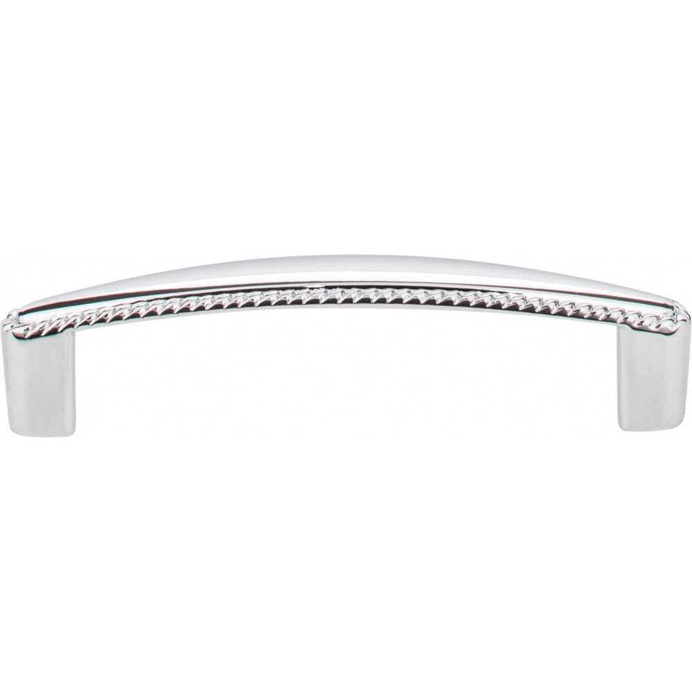 - 4-5/16" Overall Length Rope Trim Cabinet Pull. Holes are 96 mm center-to-center. Packaged with two 8-32 x 1" and two Break-away screws. Finish: Polished Chrome