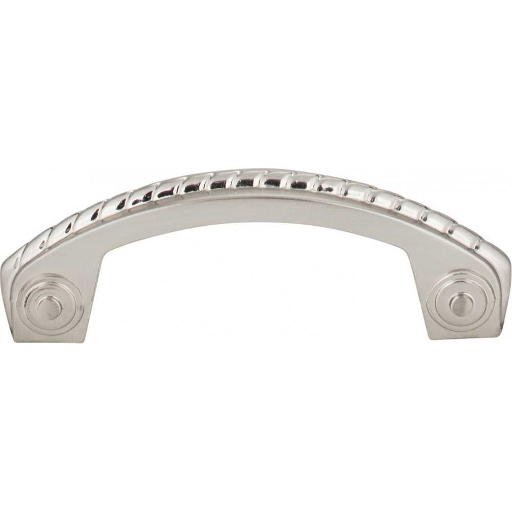 - 3-3/4" Overall Length Rope Detail Cabinet Pull. Holes are 3" center-to-center. Packaged with two 8-32 x 1" and two Break-away screws. Finish: Satin Nickel