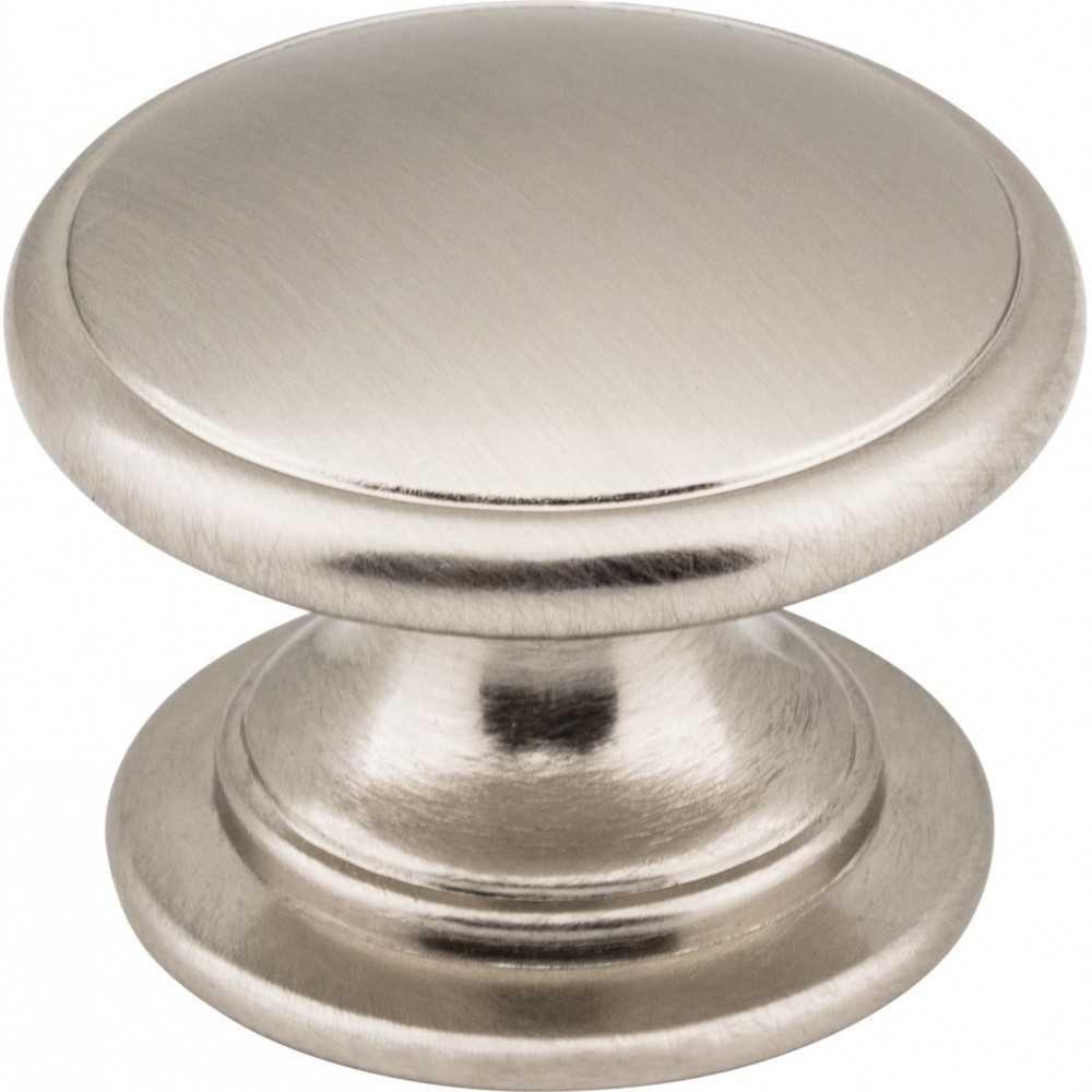 Durham's ringed 1-1/4" diameter Satin Nickel cabinet knob features an appealing yet simple shape that is sure to add traditional charm to your space. This Jeffrey Alexander knob is paired with an appealing barreled pull with similar ring detail available in four standard pull lengths and a 12" appliance handle. Offered in seven other finishes, this collection is designed to harmonize with various cabinet styles and finishes. Each item is individually wrapped to protect the item from damage. Attachment hardware is included.