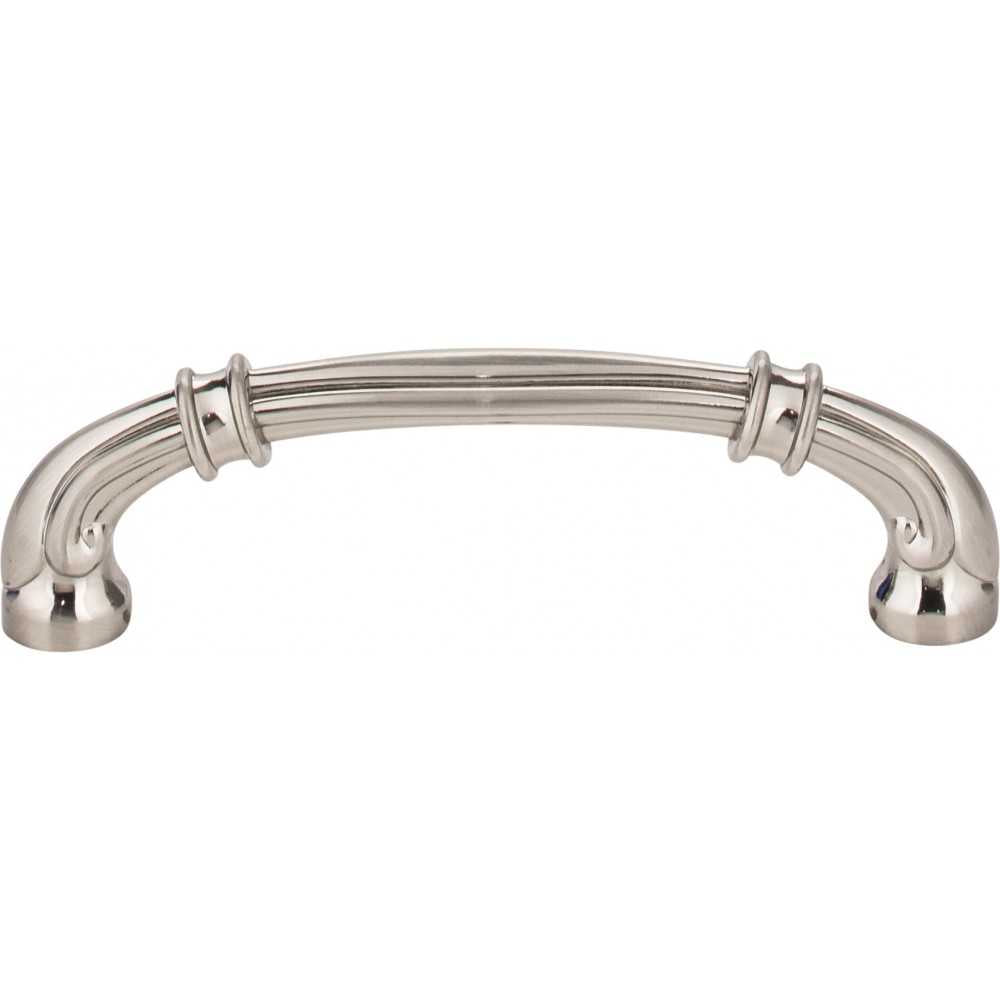 - 4-3/8" Overall Length Cabinet Pull. Holes are 96 mm center-to-center. Packaged with two 8-32 x 1" and two Break-away screws. Finish: Satin Nickel