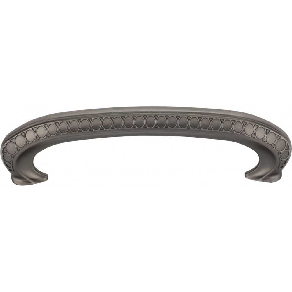 Symphony by Jeffrey Alexander is a memorable addition to any cabinet with its elaborate detail and whimsical feel. This 4-9/16" overall length Brushed Pewter baroque inspired cabinet pull features a circular pattern sure to draw attention. When paired with a similarly styled ring pull or mushroom knob, this design can transform the ordinary to the extraordinary. Five deep, lush finishes help achieve grandeur in any kitchen, bath, or closet. Each item is individually wrapped to protect the item from damage. Attachment hardware is included.