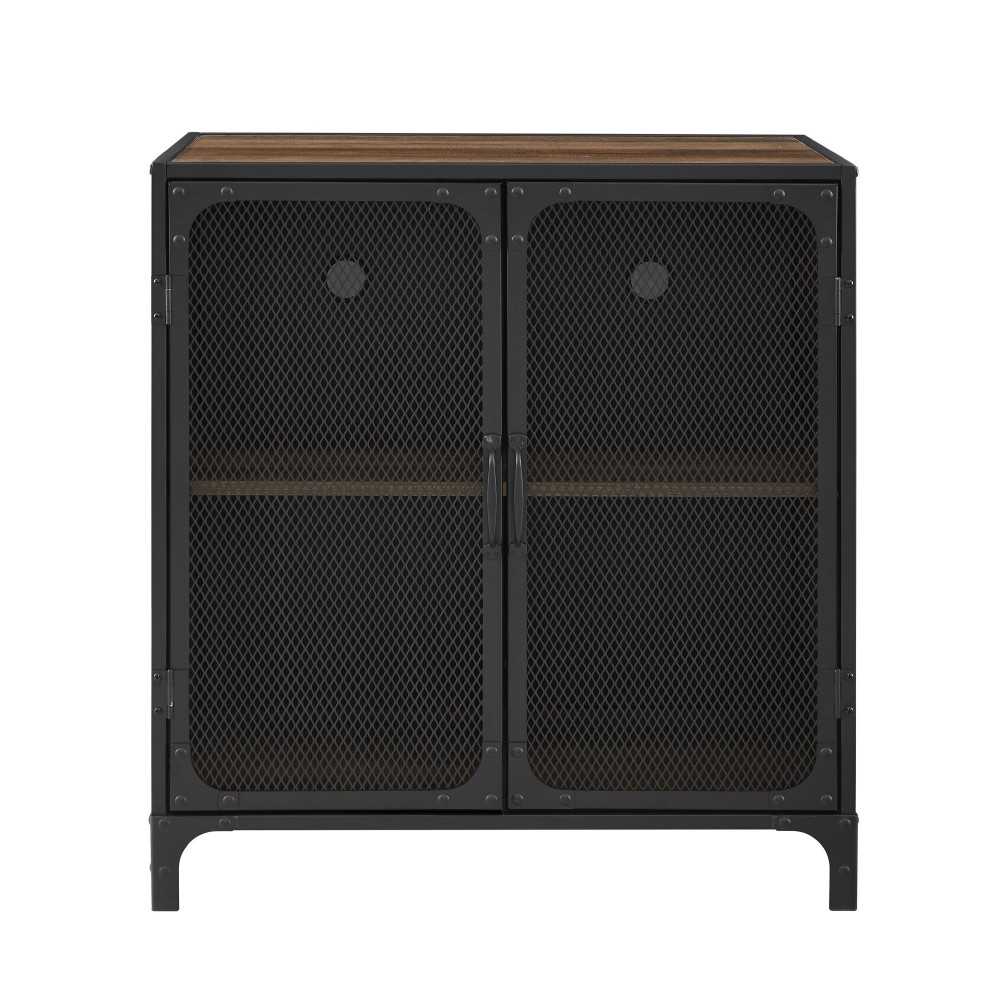 With a beautiful two-toned composition, this wood and metal cabinet will give you the extra storage space you need, while also adding an urban industrial feel to your home. Place in your living room as a TV console for your electronics, in your kitchen as a storage console for your fine china or decor, or as an accent cabinet in your bedroom for a rustic element. The shelf inside is adjustable to better fit your needs. With metal edges, mesh metal doors, a laminate finish, and hardware detailing, for an overall industrial piece.