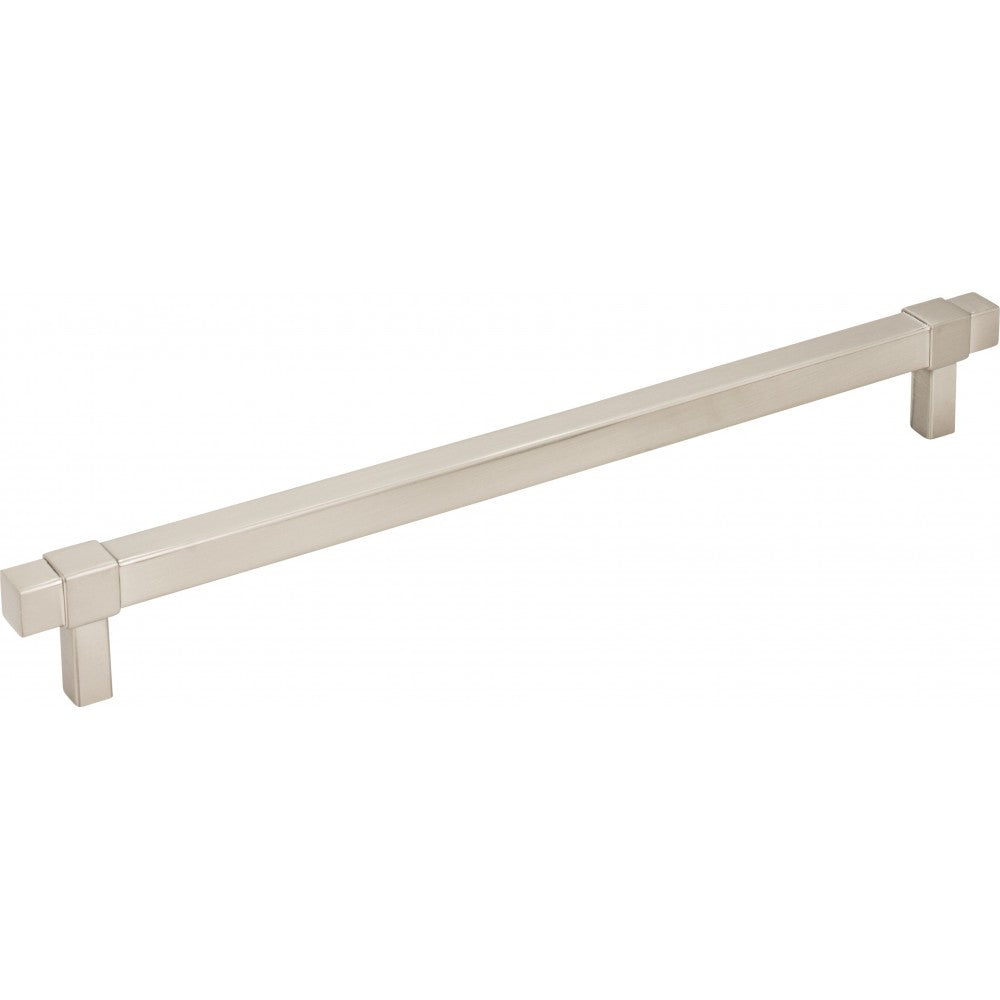 - 10-1/16" Overall Length Square Bar Pull. Holes are 224 mm center-to-center. Packaged with two 8-32 x 1" and two Break-away screws. Finish: Satin Nickel