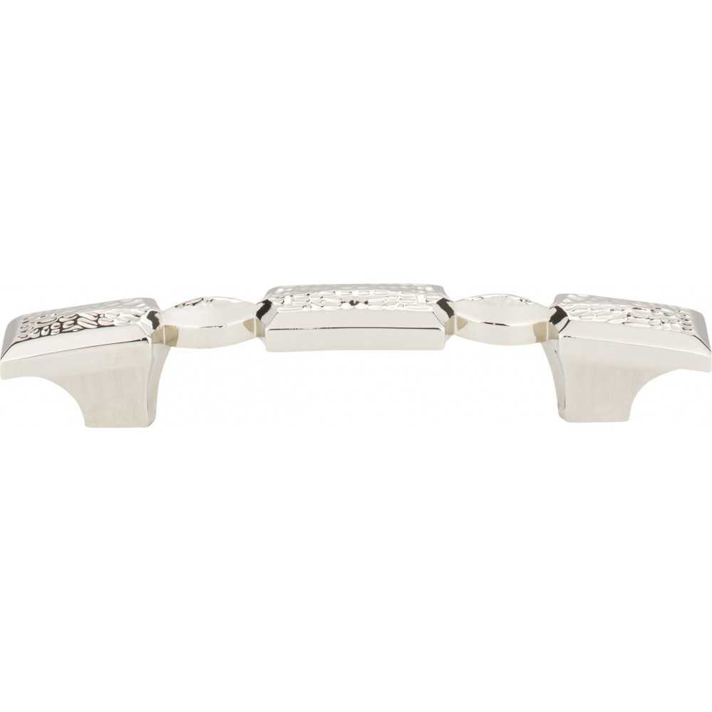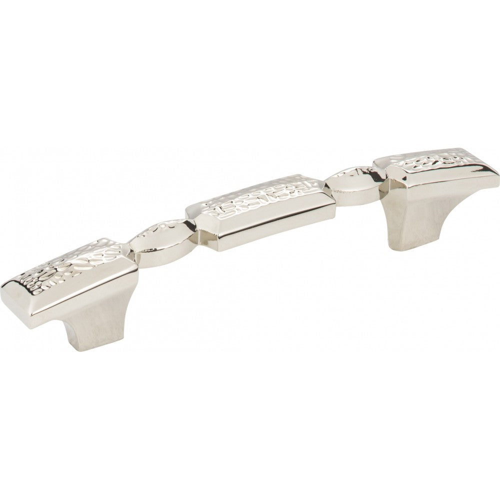 - 6" Overall Length Hammered Texture Cabinet Pull. Holes are 96 mm center-to-center. Packaged with two 8-32 x 1" and two Break-away screws. Finish: Polished Nickel