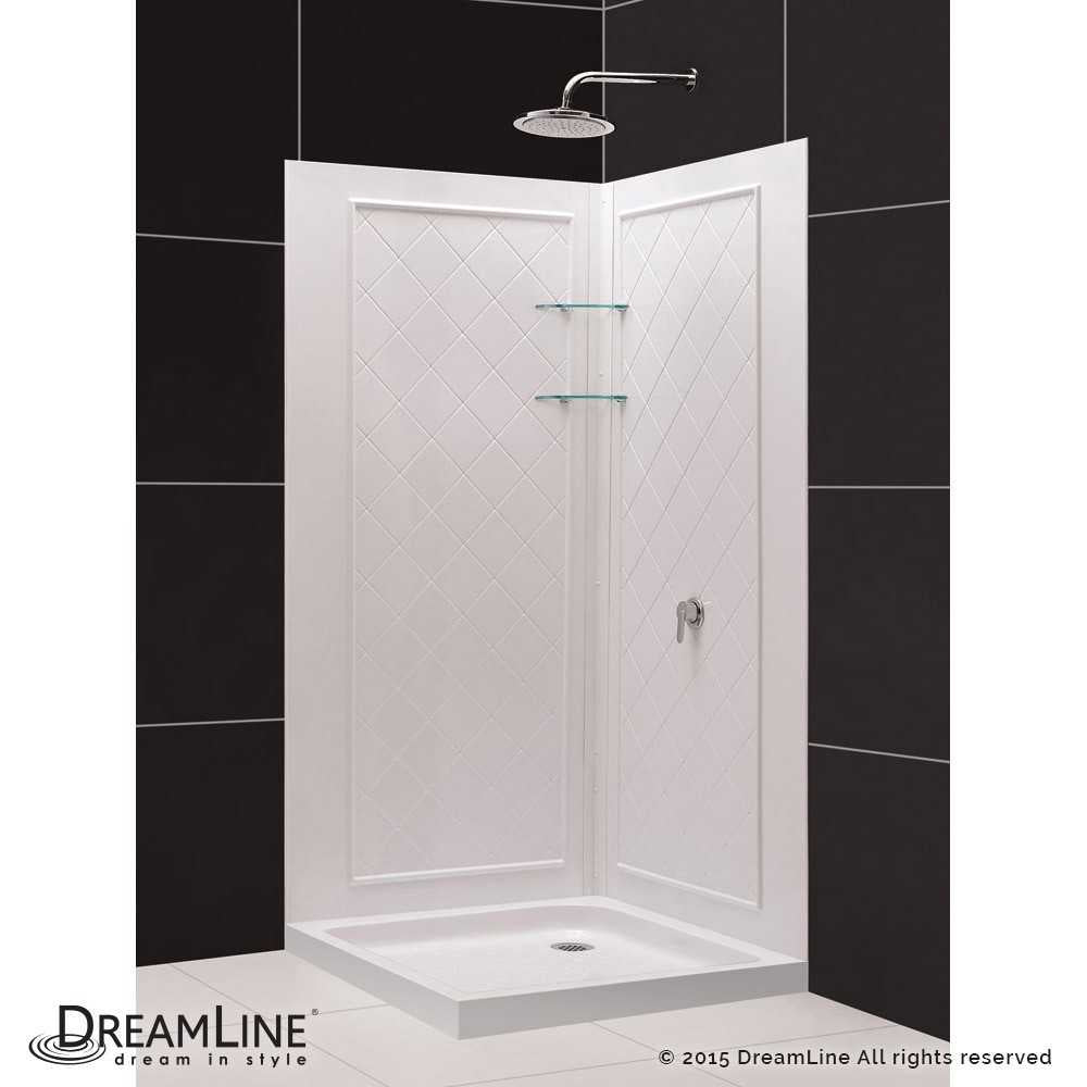 - Kit Includes: QWall-4 Backwalls and Double Threshold SlimLine Base; Drain Location: Corner; Color: White