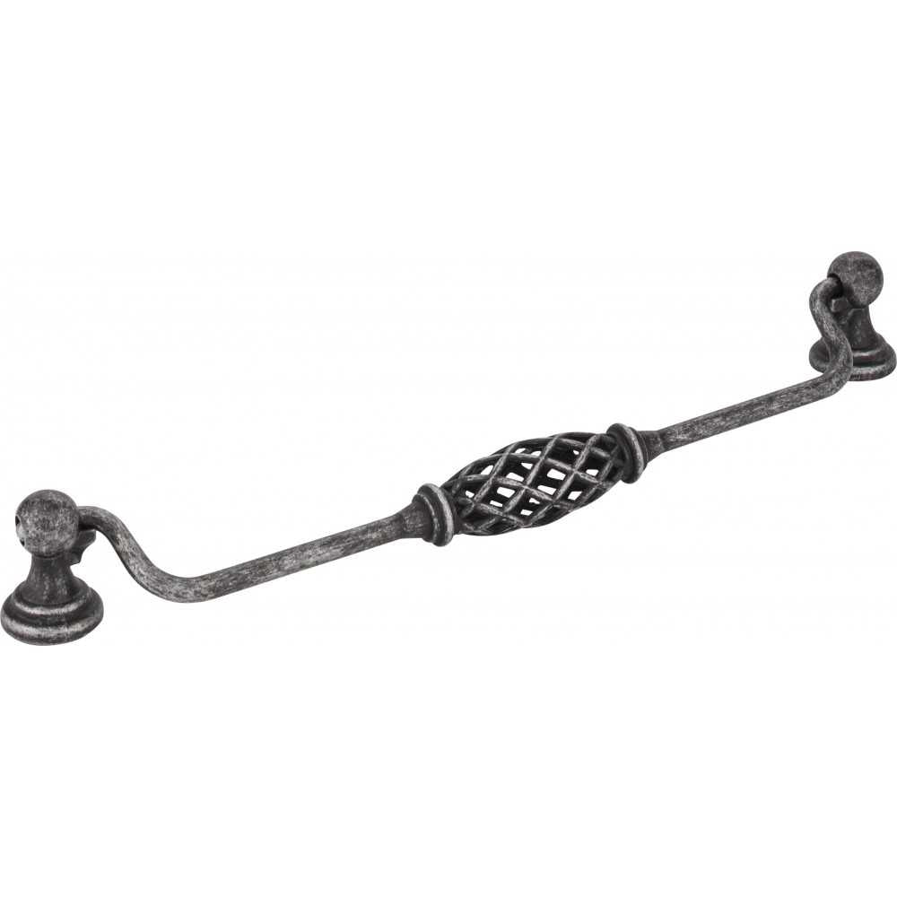 - 9-3/4" Overall Length Birdcage Cabinet Pull with backplates. Holes are 224 mm center-to-center. Packaged with two 8-32 x 1" screws. Finish: Distressed Antique Silver
