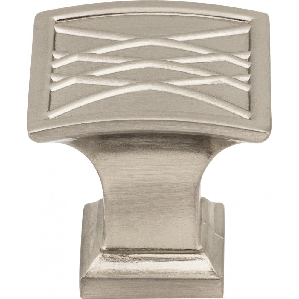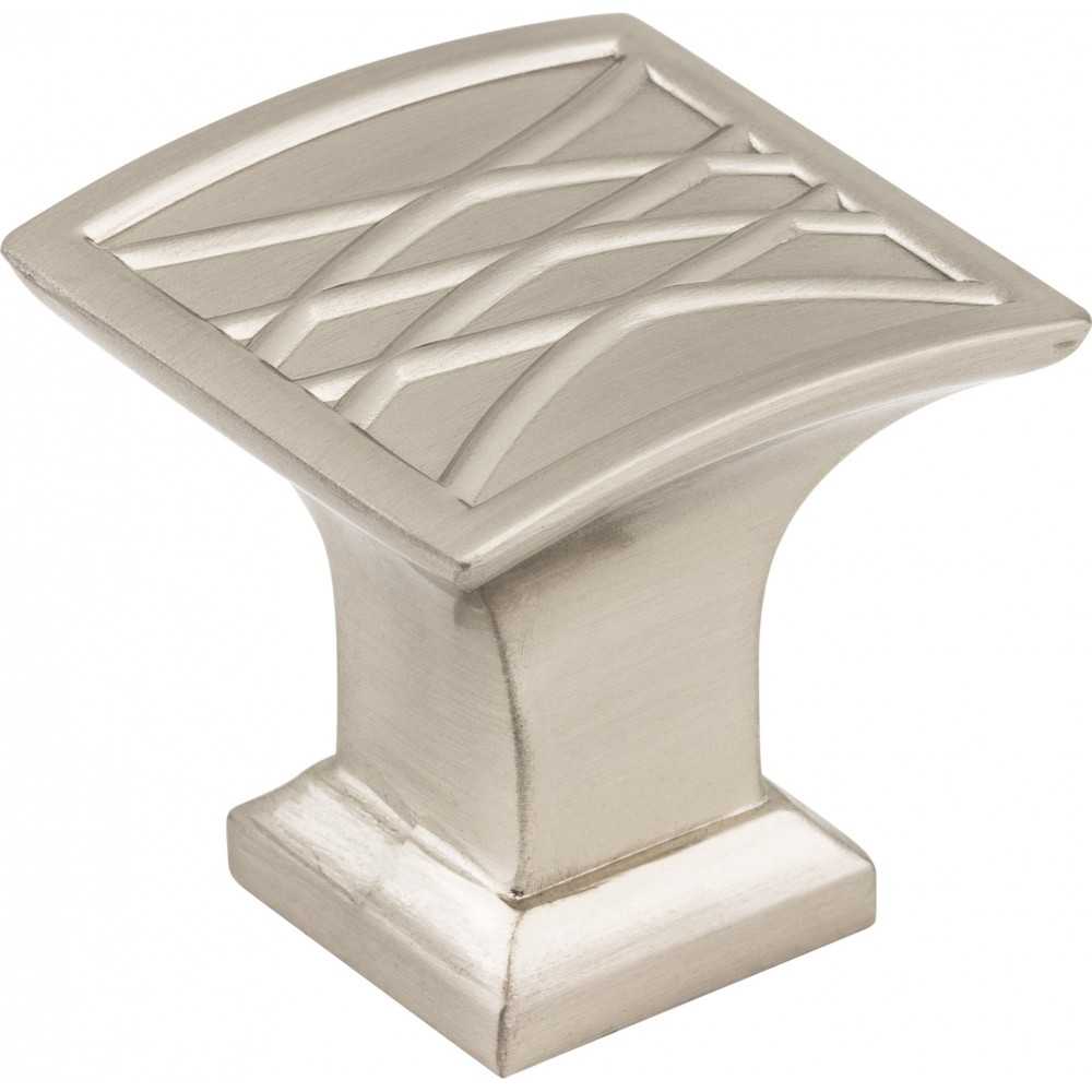 Inspired by textiles used in fashion, Aberdeen's look is truly one of a kind. The imaginative geometric pattern enhances the wide square base of this Satin Nickel Jeffrey Alexander 1-1/4" square knob. This collection offers many pull and knob combination options with an additional 1/2" rectangle knob, three standard pull lengths and two cup pull lengths all available in three other finishes. Each item is individually wrapped to protect the item from damage. Attachment hardware is included.