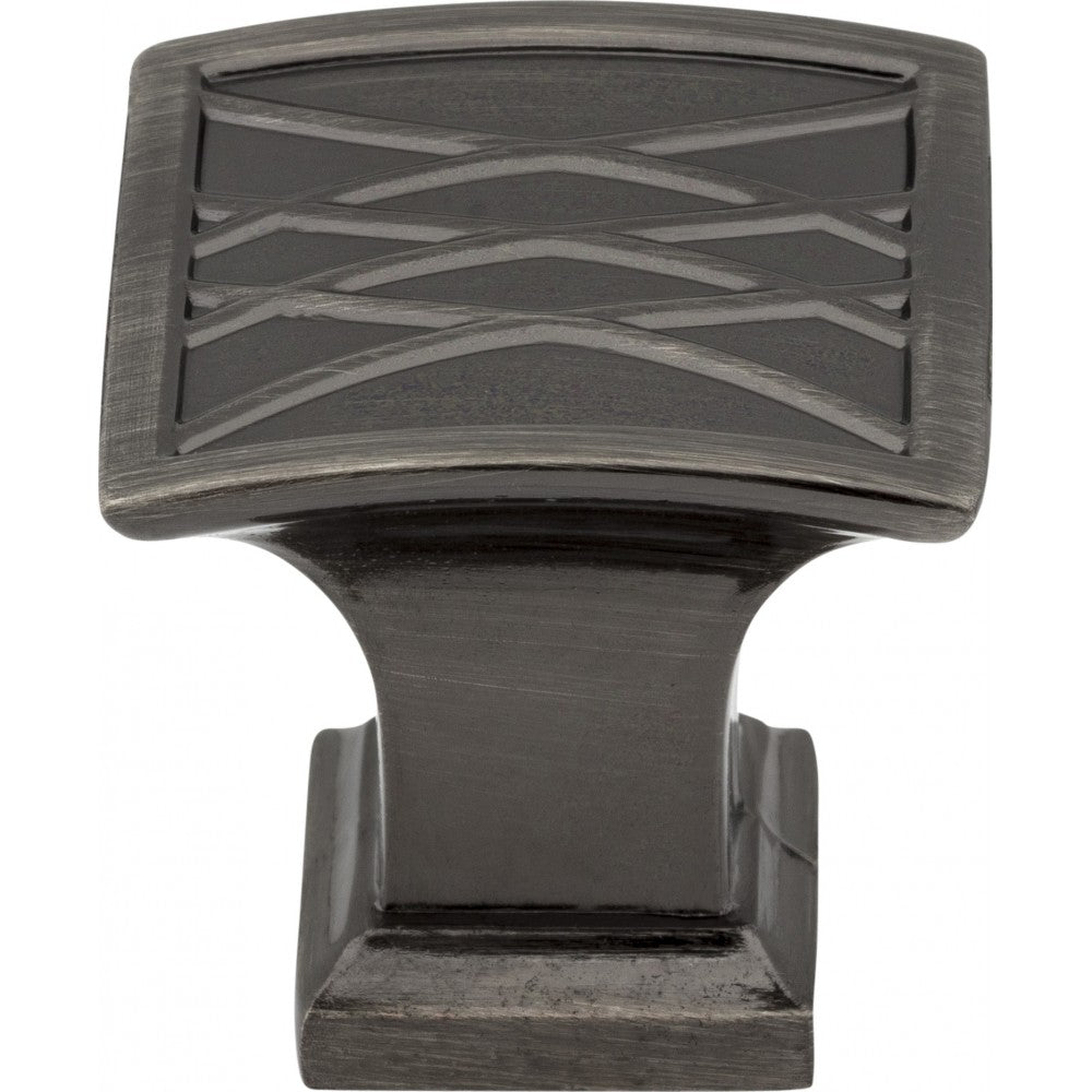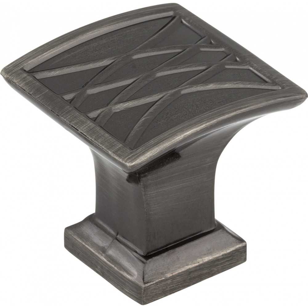 Inspired by textiles used in fashion, Aberdeen's look is truly one of a kind. The imaginative geometric pattern enhances the wide square base of this Brushed Black Nickel Jeffrey Alexander 1-1/4" square knob. This collection offers many pull and knob combination options with an additional 1/2" rectangle knob, three standard pull lengths and two cup pull lengths all available in three other finishes. Each item is individually wrapped to protect the item from damage. Attachment hardware is included.