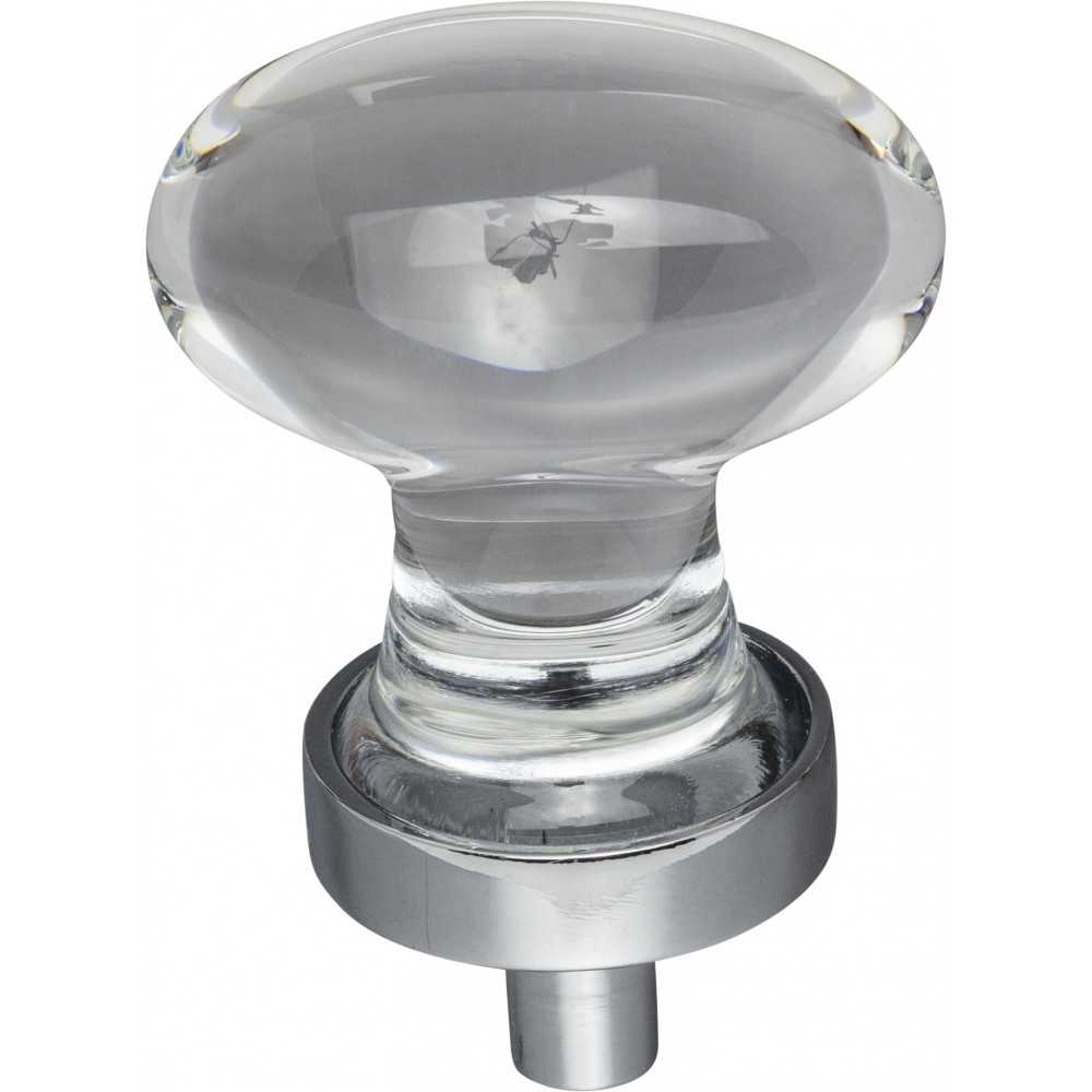 - 1-1/4" Overall Length Glass Football Cabinet Knob. Packaged with one 8-32 x 9/16" and 1-3/4" Break-away screw. Finish: Polished Chrome