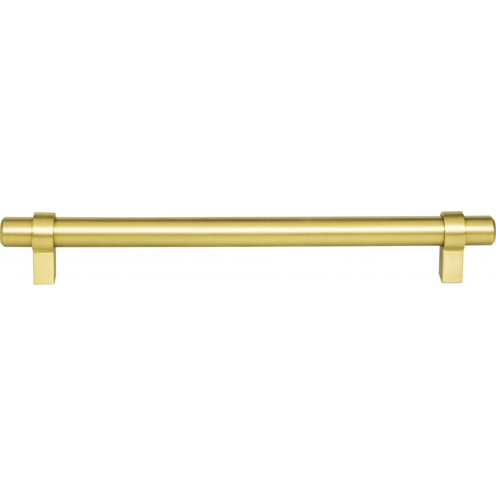 9-1/8" Overall Length Bar Cabinet Pull. Holes are 192 mm center-to-center. Packaged with two 8-32 x 1" screws. Finish: Brushed Gold