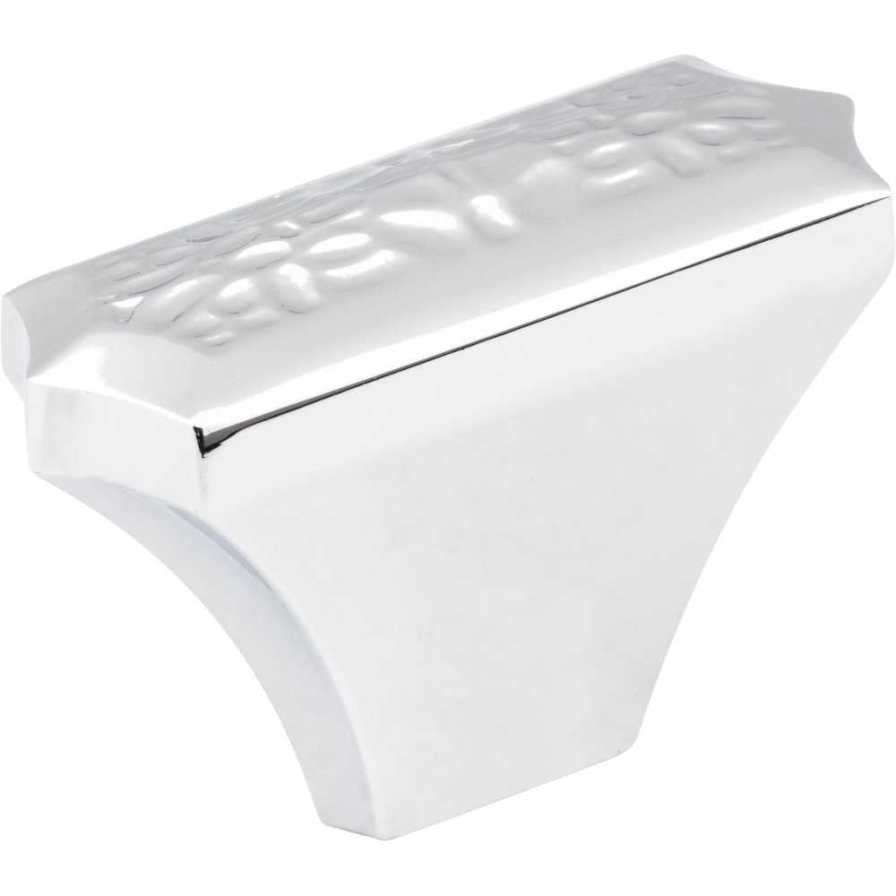 The distinctive hammered texture and faceted shapes of Solana makes it a glamourous addition to any kitchen, bath or closet space. This edgy 2" overall length Polished Chrome Jeffrey Alexander oblong cabinet knob is available in four sleek finishes. Complete the look with a 1-1/4" square knob or cabinet pull, both featuring the same enchanting detail. Each item is individually wrapped to protect the item from damage. Attachment hardware is included.
