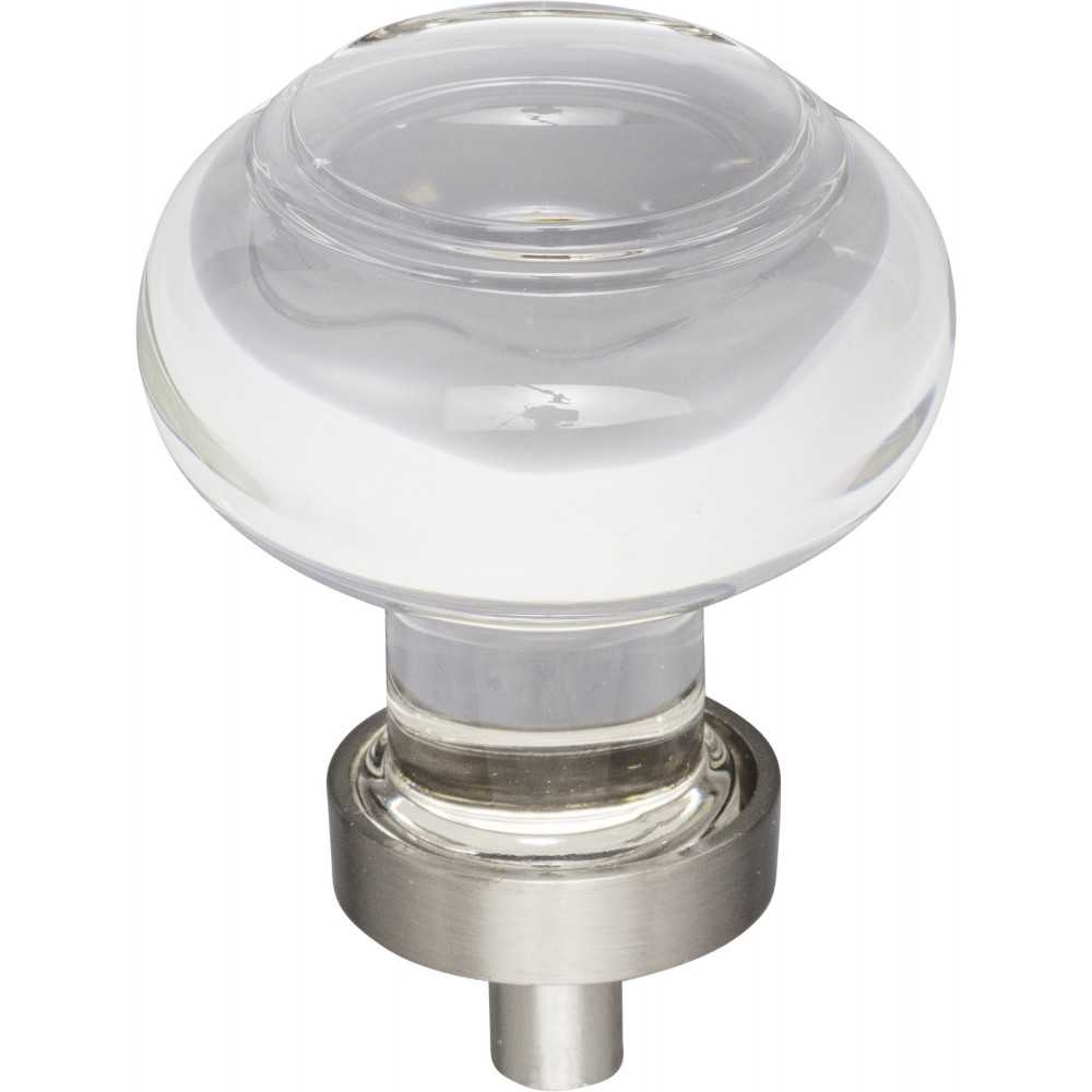 - 1-7/16" Diameter Glass Button Cabinet Knob. Packaged with one 8-32 x 9/16" and 1-3/4" Break-away screw. Finish: Satin Nickel