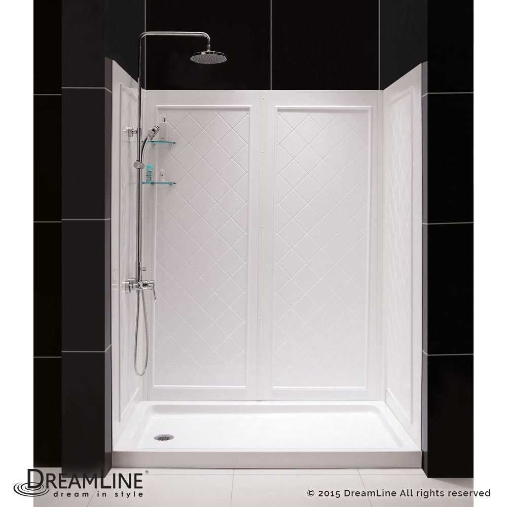 - Kit Includes: QWall-5 Backwalls and Single Threshold SlimLine Base; Drain Location: Left; Color: White