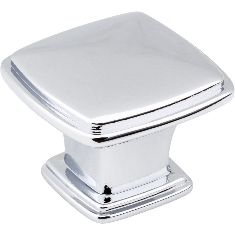 Charismatic and fashionable, the soft square design of Milan 1 has matured from a daring new shape to a timeless classic. The simple stepped accents of this 1-3/16" overall length Polished Chrome square cabinet knob makes this collection a go-to for a variety of cabinet styles. Pair this Jeffrey Alexander knob with three standard pull lengths and an appliance handle in eight finishes that range from traditional to contemporary, and complete any transitional or modern design. Each item is individually wrapped to protect the item from damage. Attachment hardware is included.