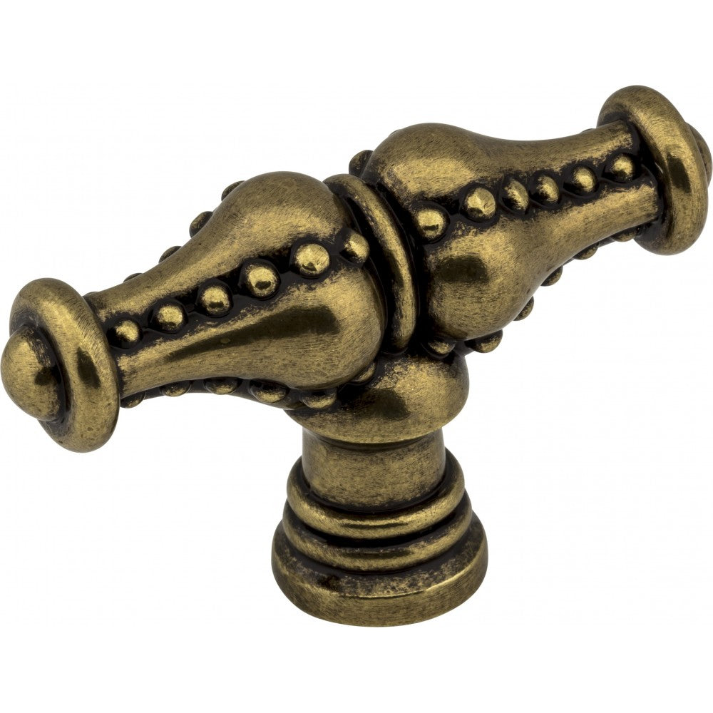 Prestige, by Jeffrey Alexander, exudes a dignified Victorian ornamental feel. This 2-1/4" overall length Lightly Distressed Antique Brass cabinet "T" knob has flowing, picturesque curves and rounded edges with intricate beaded detail. The knob coordinates with three standard pull lengths, an appliance handle option, as well as a 1-3/4" round knob. Choose from five finish options, each enhancing the vintage feel of this regal collection. Each item is individually wrapped to protect the item from damage. Attachment hardware is included.