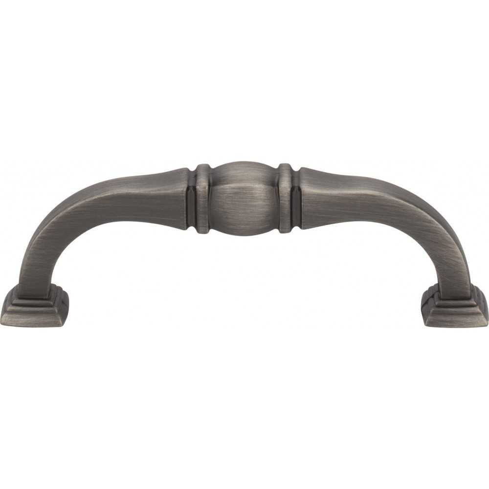 Katharine by Jeffrey Alexander brings a bit of dramatic glamour to any home. Harkening days of Old Hollywood, this alluring and curvaceous 4-3/8" overall length Brushed Pewter pull is accentuated by the intriguing center detail and stacked square feet. This Jeffrey Alexander pull also features a higher hand clearance, making it a great option for Aging in Place. Available in two other standard pull lengths, pair this pull with a coordinating knob offered in two sizes. Choose from four classic finishes to complete any traditional or transitional space. Each item is individually wrapped to protect the item from damage. Attachment hardware is included.