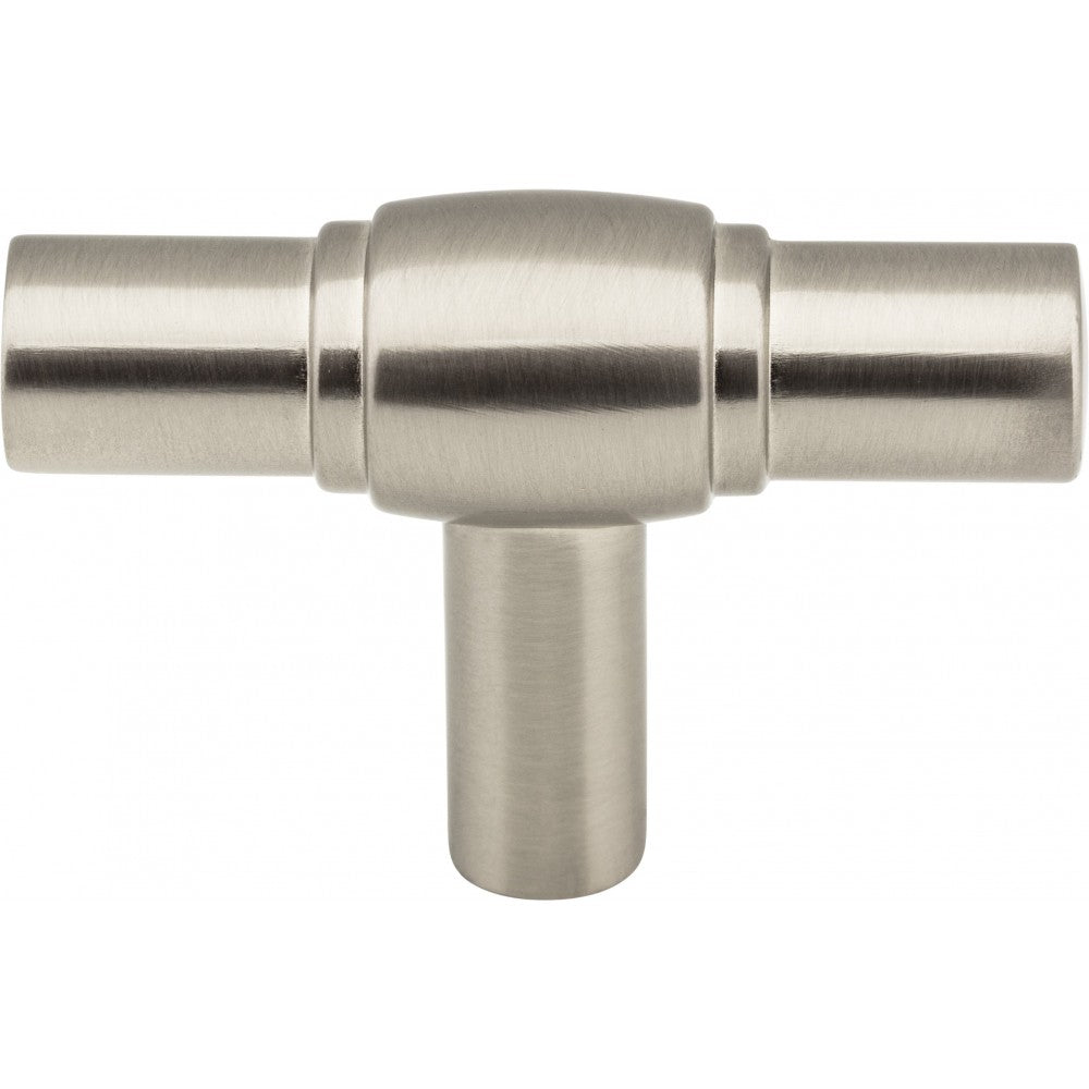 - 2" Overall Length Cabinet "T" Knob. Packaged with one 8-32 x 9/16" and 1-3/4" Break-away screw. Finish: Satin Nickel