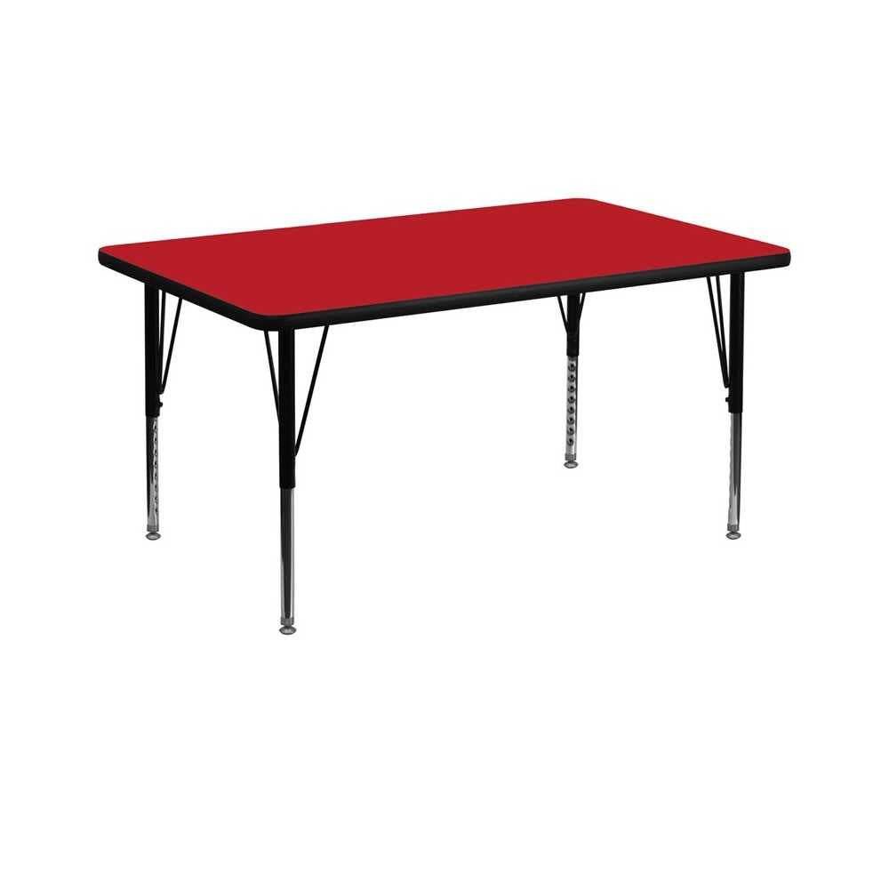 This Rectangle Activity Table is a must have for daycare, preschool and early childhood development centers. Enhance collaborative learning by grouping tables together. It will accommodate children up to age 7. It features a 36"W x 72"L high pressure scratch, stain and warp resistant laminate top with a black edge band and 16 gauge tubular steel legs for increased stability. The top incorporates a protective underside backing sheet to prevent moisture absorption and warping. An attractive black powder coated finish protects the upper legs from scratches and height adjustable chrome lower legs give you the flexibility to raise or lower the table a full 9" in 1" increments. Self-leveling nylon floor glides keep the table from wobbling and protect your floor by sliding smoothly when you need to move it. Perfect for craft time, snack time and party time, this easy to clean table is just the right size for small children. [XU-A3672-REC-RED-H-P-GG]