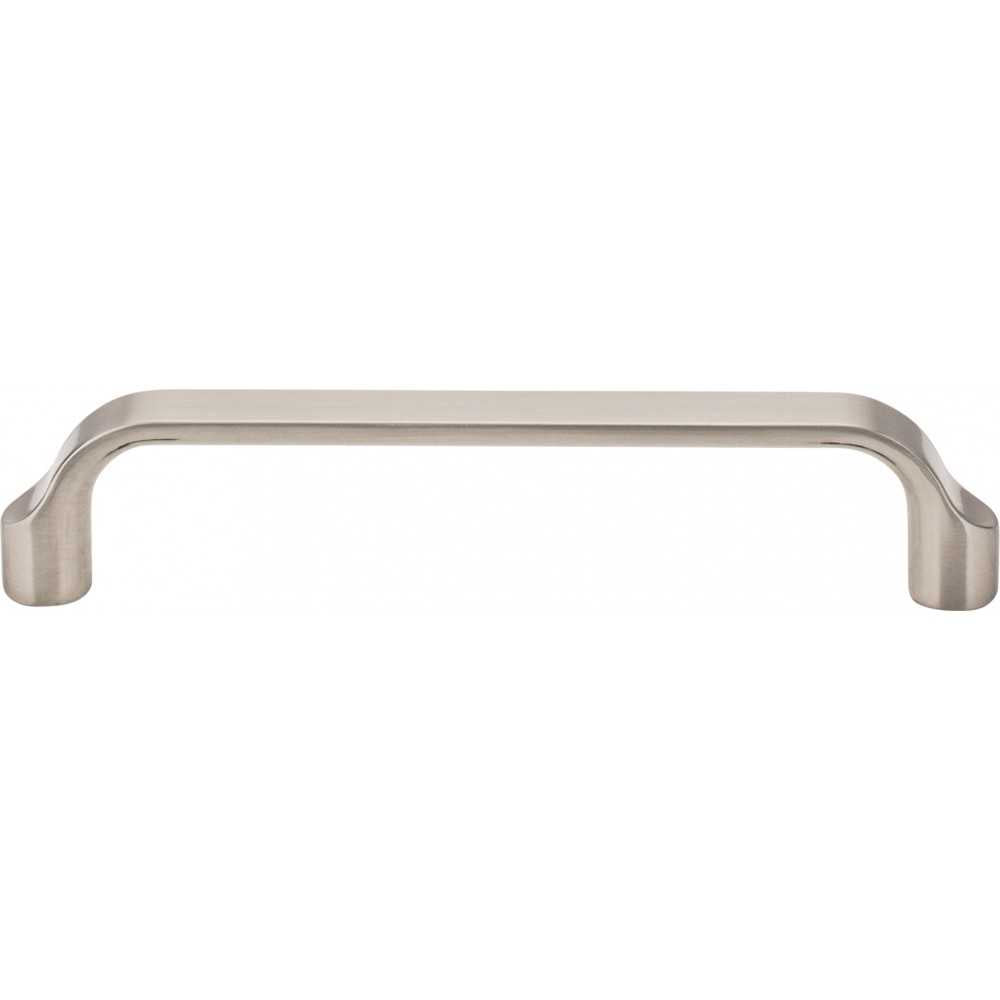 Brenton from Elements features a understated bar pull that doesn't skimp on character. The rounded feet of this Satin Nickel 5-9/16" overall length pull curve inward towards a flat squared handle, taking the typical bar pull from ordinary to extraordinary. A matching button knob echoes the pulls geometric characteristics. Available in six other finishes and three additional pull sizes. Each item is individually wrapped to protect the item from damage. Attachment hardware is included.