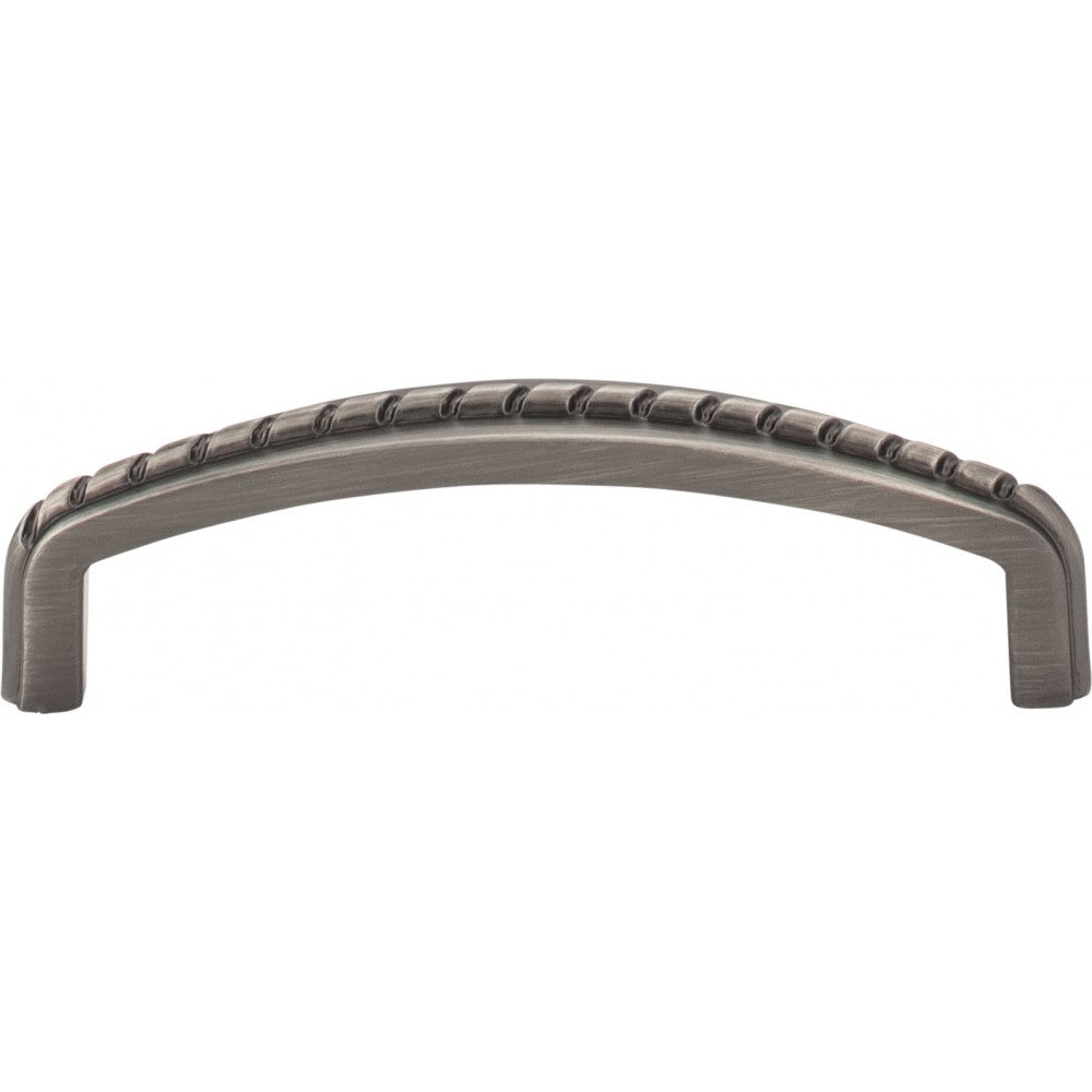 The Artesian style rope accent of this Brushed Pewter 4-1/16" overall length pull in the Cypress collection by Elements adds sophisticated appeal to your home with craftsmanlike detail. With a coordinating rope detailed knob and additional pull length, this collection is the perfect accent to any cabinet and is available in three finishes. Each item is individually wrapped to protect the item from damage. Attachment hardware is included.