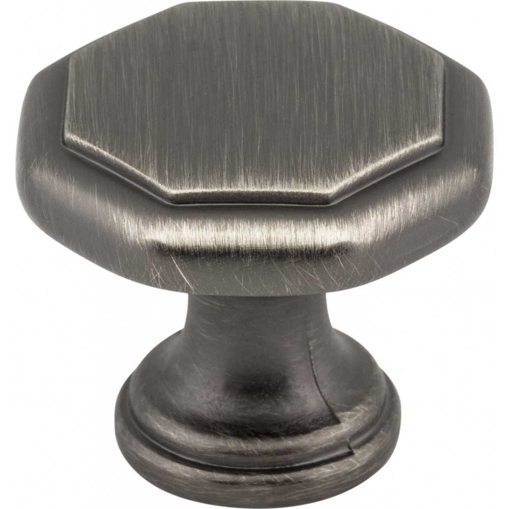 The beautifully geometric design of this flat top Brushed Pewter 1-3/16" diameter knob in the Drake collection by Elements adds a touch of luxury to any room. With a coordinating 1-3/16" faceted geometric knob, and two pull lengths that also showcase a geometric design, this collection is available in four other stylish finishes. Each item is individually wrapped to protect the item from damage. Attachment hardware is included.