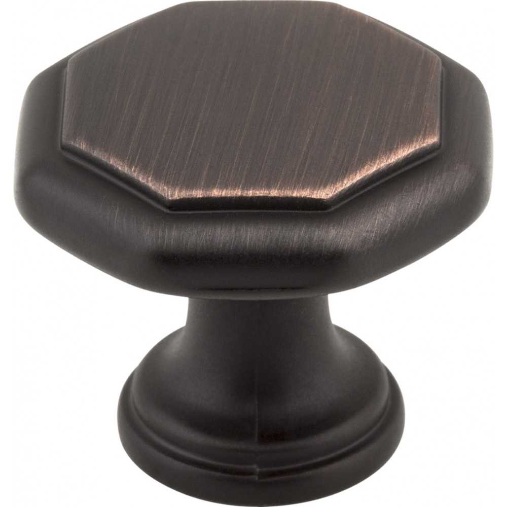 The beautifully geometric design of this flat top Brushed Oil Rubbed Bronze 1-3/16" diameter knob in the Drake collection by Elements adds a touch of luxury to any room. With a coordinating 1-3/16" faceted geometric knob, and two pull lengths that also showcase a geometric design, this collection is available in four other stylish finishes. Each item is individually wrapped to protect the item from damage. Attachment hardware is included.