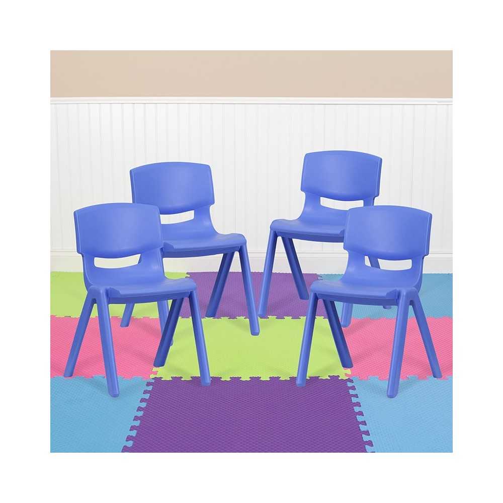 Safeguard your young students with proper classroom chairs that are designed for safety as you provide educational lessons to rambunctious pupils. The one-piece shell chair doesn't have any metal pieces. Boasting a gender-neutral finish, these classroom chairs will focus children on class assignments. Be prepared for play dates by having additional kids chairs in the playroom, kitchen or storage area. The stackable plastic chairs are ideal in the home when extra stack chairs are purchased. Low in maintenance, these school stack chairs wipe clean with ease after arts and craft projects. Having young children sit in a chair that is designed for them is important in developing proper sitting habits that will last them a lifetime. Not only are these chairs designed properly, but they are lightweight for students to move around the classroom. Complete by pairing with our plastic height adjustable activity table. [4-YU-YCX4-004-BLUE-GG]