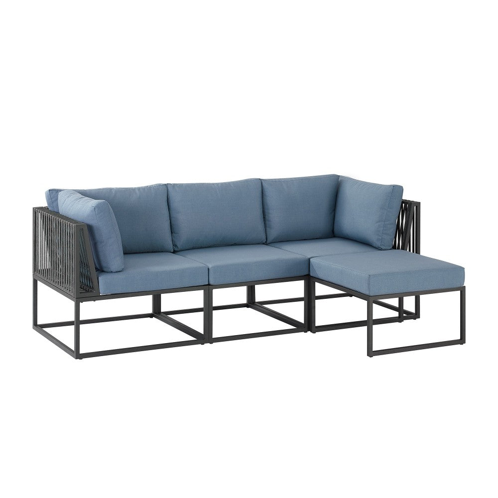 4-Piece Outdoor Cord Modular Sectional - Blue