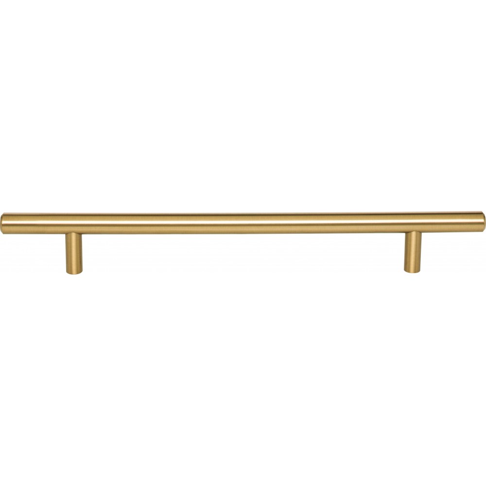 - 272 mm (10-11/16") Overall Length 7/16" Diameter Steel Cabinet Bar Pull with Beveled Ends. Holes are 192 mm center-to-center. Packaged with two 8-32 x 1" and two Break-away screws. Finish: Satin Bronze