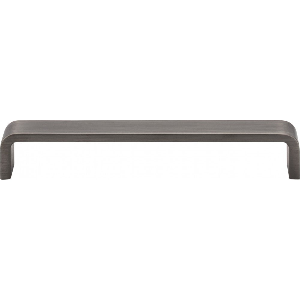 Asher from Elements takes contemporary into a bold new direction by updating the look of the classic wire pull. This 6-9/16" overall length pull in Brushed Pewter has a more substantial and robust presence than the traditional wire pull and offers a simple yet distinct look. This stylish series is available in five other finishes, and four additional lengths. Each item is individually wrapped to protect the item from damage. Attachment hardware is included.