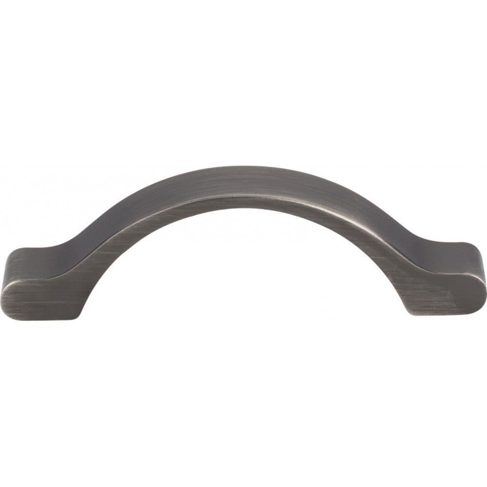 The sturdy uniform width handle and ribbon-like curved feet make this Brushed Pewter 4-1/16" overall length Seaver pull from Elements a gentle but bold visual. Available in three additional finishes, and an additional length, a simple well-rounded knob matches these pulls nicely. Each item is individually wrapped to protect the item from damage. Attachment hardware is included.