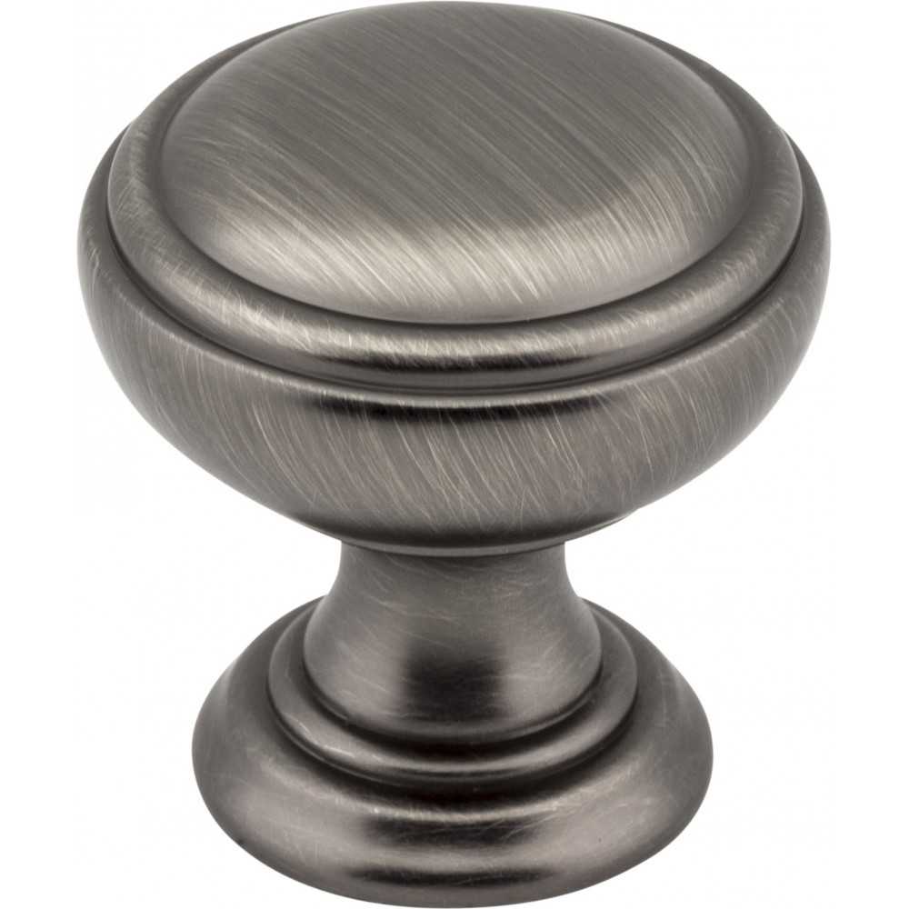 Tiffany combines a classically elegant shape with a transitional twist for a look that is timeless. This graceful 1-1/4" diameter Brushed Pewter cabinet knob features step details accompanied by flowing curves for a comfortable feel in your hand. Combining this knob with five standard pull lengths and an appliance handle option makes this Jeffrey Alexander pull design a popular choice. Adding to the desirability, this knob is offered in seven stunning finishes, including both of our trending gold tones. Each item is individually wrapped to protect the item from damage. Attachment hardware is included.