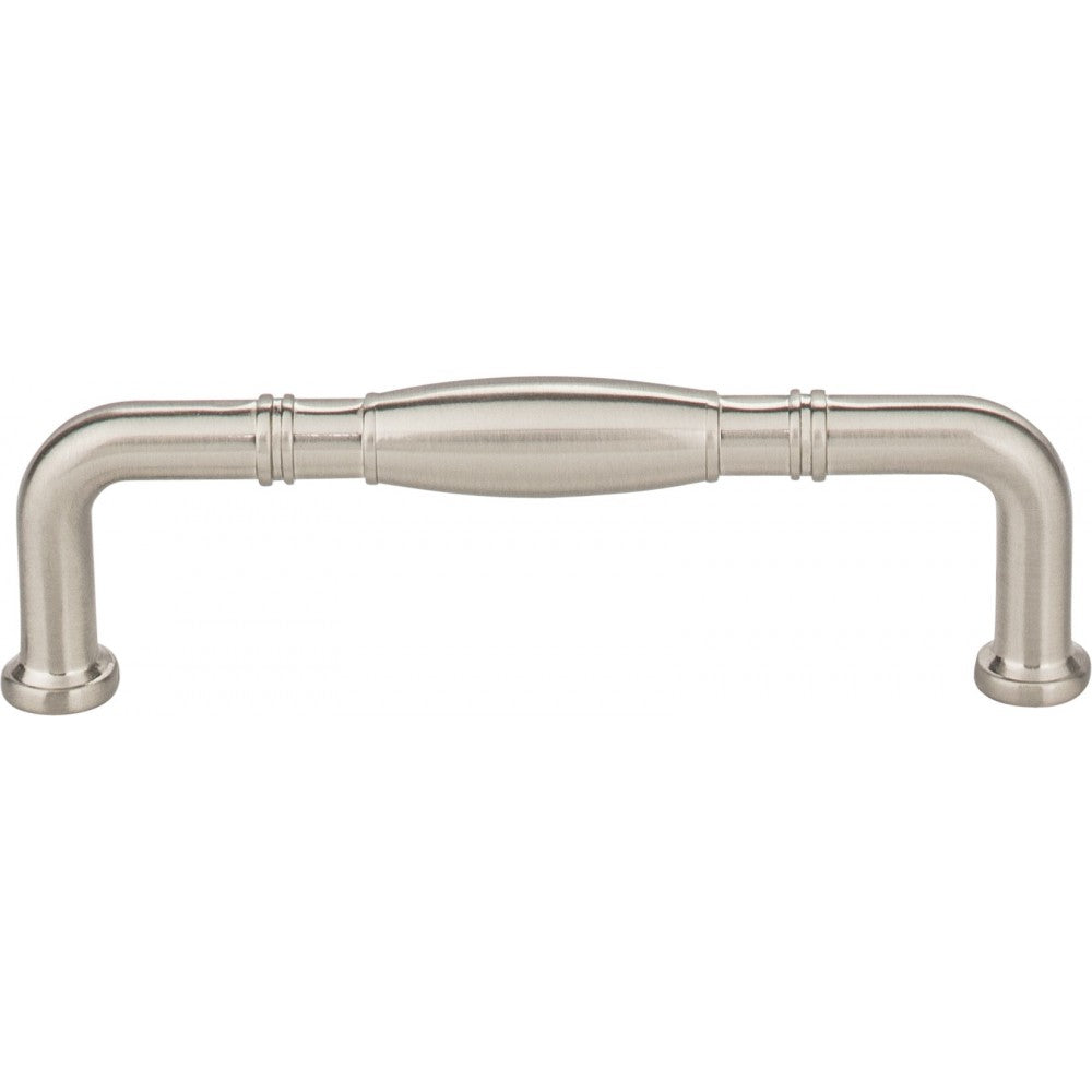 Durham's 4-1/4" overall length Satin Nickel cabinet pull features an appealing yet simple barrel shape that is sure to add traditional charm to your space. This Jeffrey Alexander pull is available in three additional standard pull lengths, 12" appliance handle and coordinating ringed mushroom knob. Offered in eight varying finishes, this collection is designed to harmonize with various cabinet styles and finishes. Each item is individually wrapped to protect the item from damage. Attachment hardware is included.