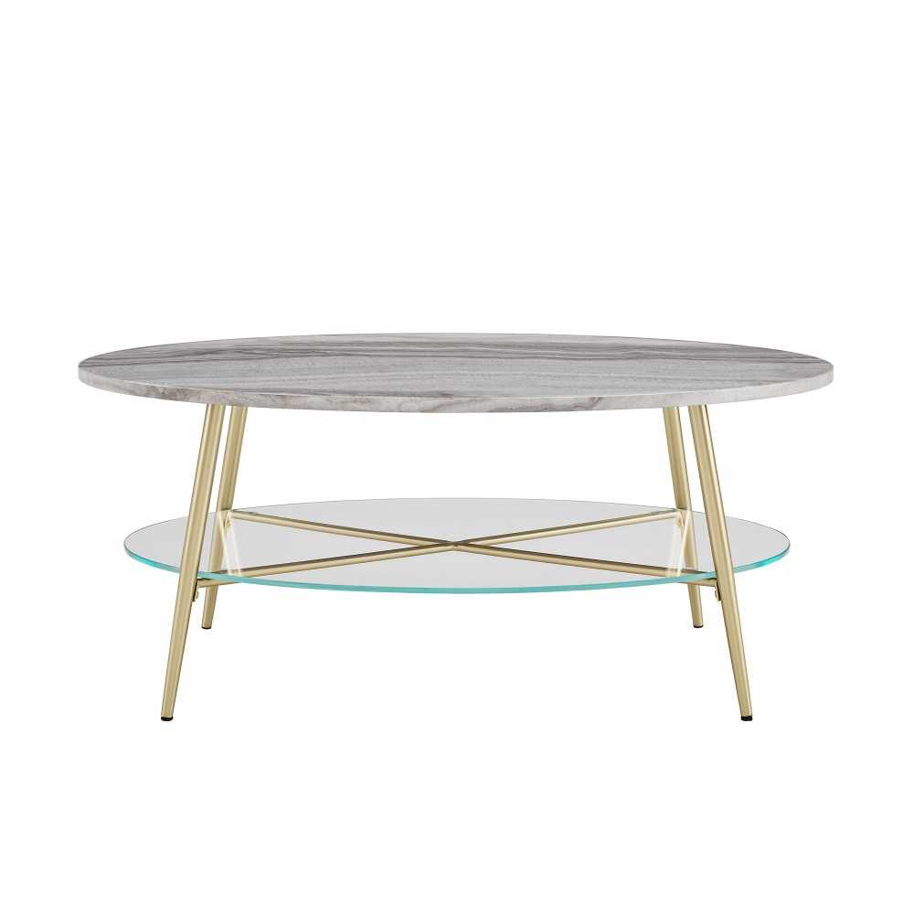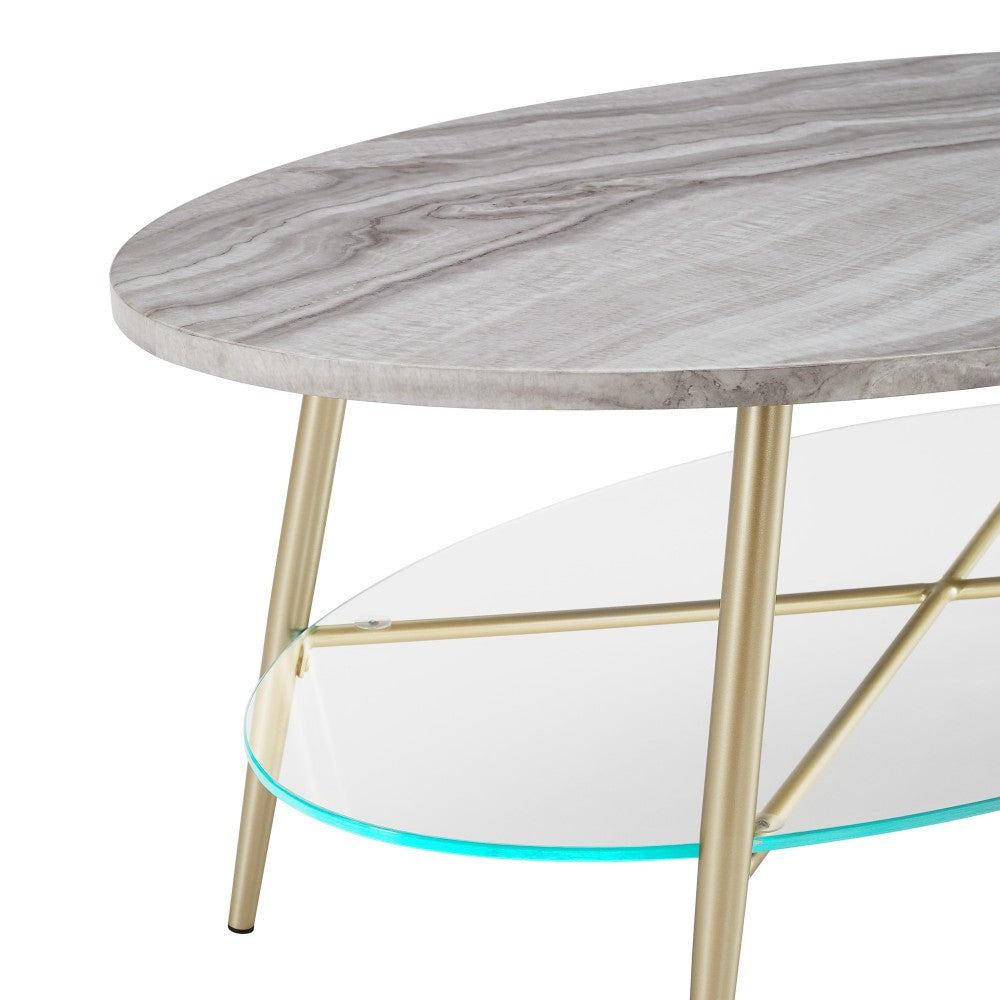 42" Oval Faux Marble and Glass Coffee Table - Gray Faux Vein Cut Marble/Gold