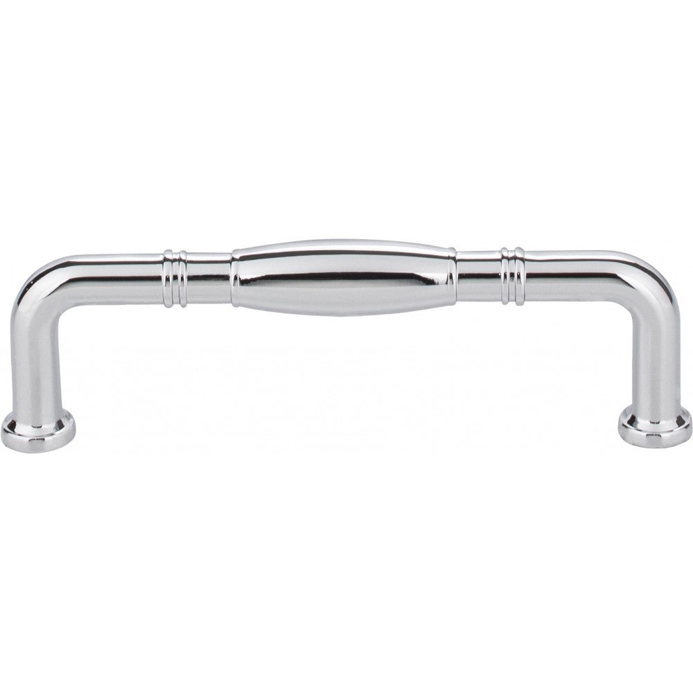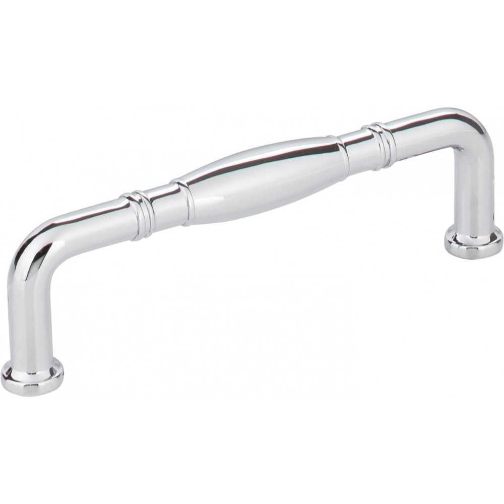 Durham's 4-1/4" overall length Polished Chrome cabinet pull features an appealing yet simple barrel shape that is sure to add traditional charm to your space. This Jeffrey Alexander pull is available in three additional standard pull lengths, 12" appliance handle and coordinating ringed mushroom knob. Offered in eight varying finishes, this collection is designed to harmonize with various cabinet styles and finishes. Each item is individually wrapped to protect the item from damage. Attachment hardware is included.