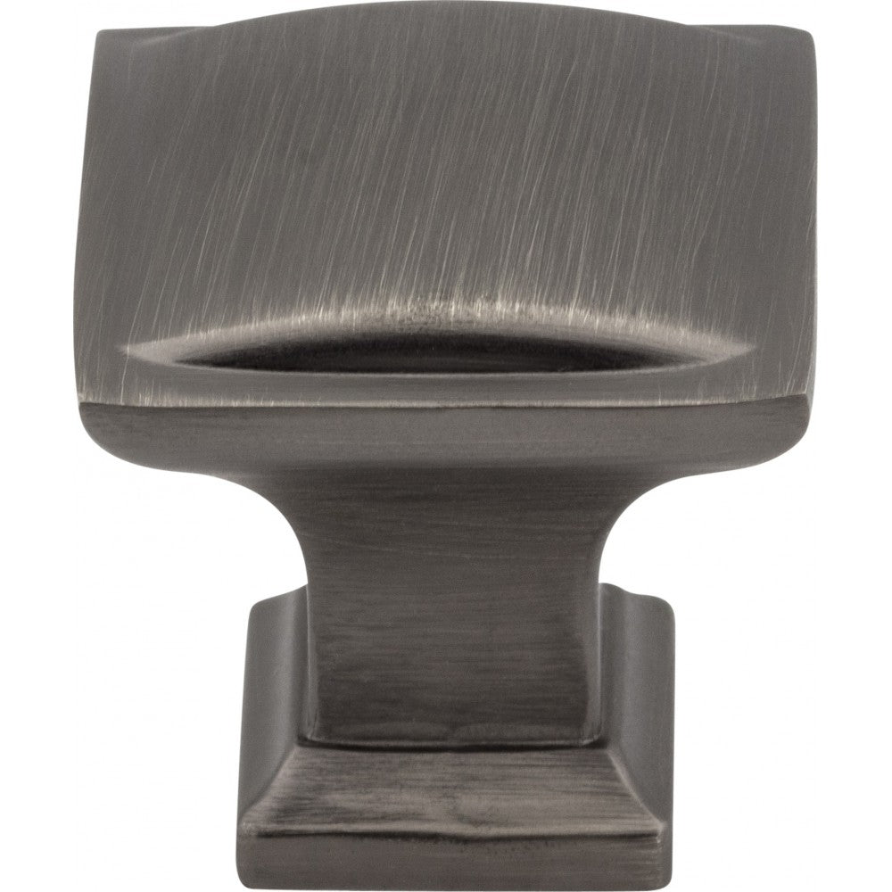 A wide square shape softened with a pillow top accent makes this 1-1/4" Brushed Pewter Annadale square knob an inviting and strikingly beautiful choice. This Jeffrey Alexander Collection also offers a 1-1/2" rectangle knob, three standard pull lengths and two square cup pull options. Available in four other beautiful finishes like classic Satin Nickel and rustic Gun Metal, this collection is at home in traditional, transitional ,and rustic design schemes. Each item is individually wrapped to protect the item from damage. Attachment hardware is included.