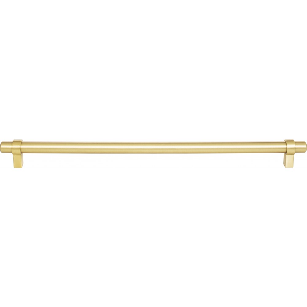 14-1/8" Overall Length Bar Cabinet Pull. Holes are 319 mm center-to-center. Packaged with two 8-32 x 1" and two Break-away screws. Finish: Brushed Gold