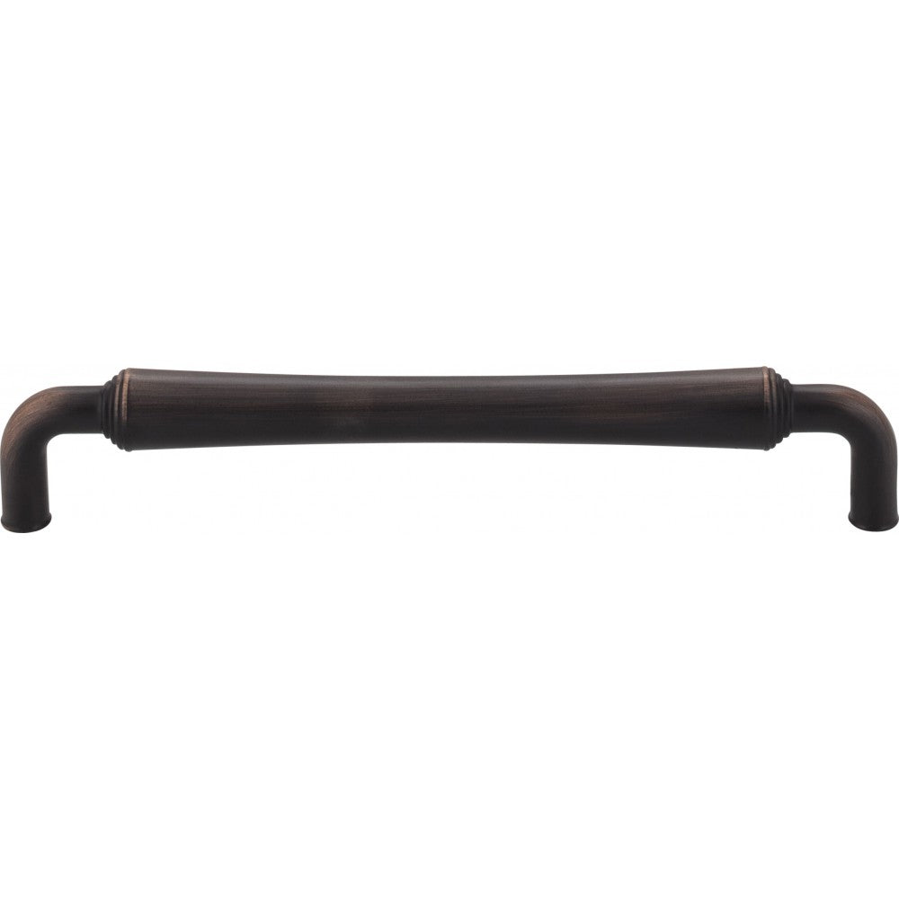 The unfailing style of Jeffrey Alexander's Bremen 2 is highlighted by the pull's slight curve and a sturdy presence. The stacked barrel design of this 6-11/16" overall length Brushed Oil Rubbed Bronze cabinet pull is echoed in two additional standard pull lengths, an appliance handle as well as in two coordinating knobs. Offered in six endearing finishes, this Jeffrey Alexander collection feels at home in traditional and American Country design. Each item is individually wrapped to protect the item from damage. Attachment hardware is included.