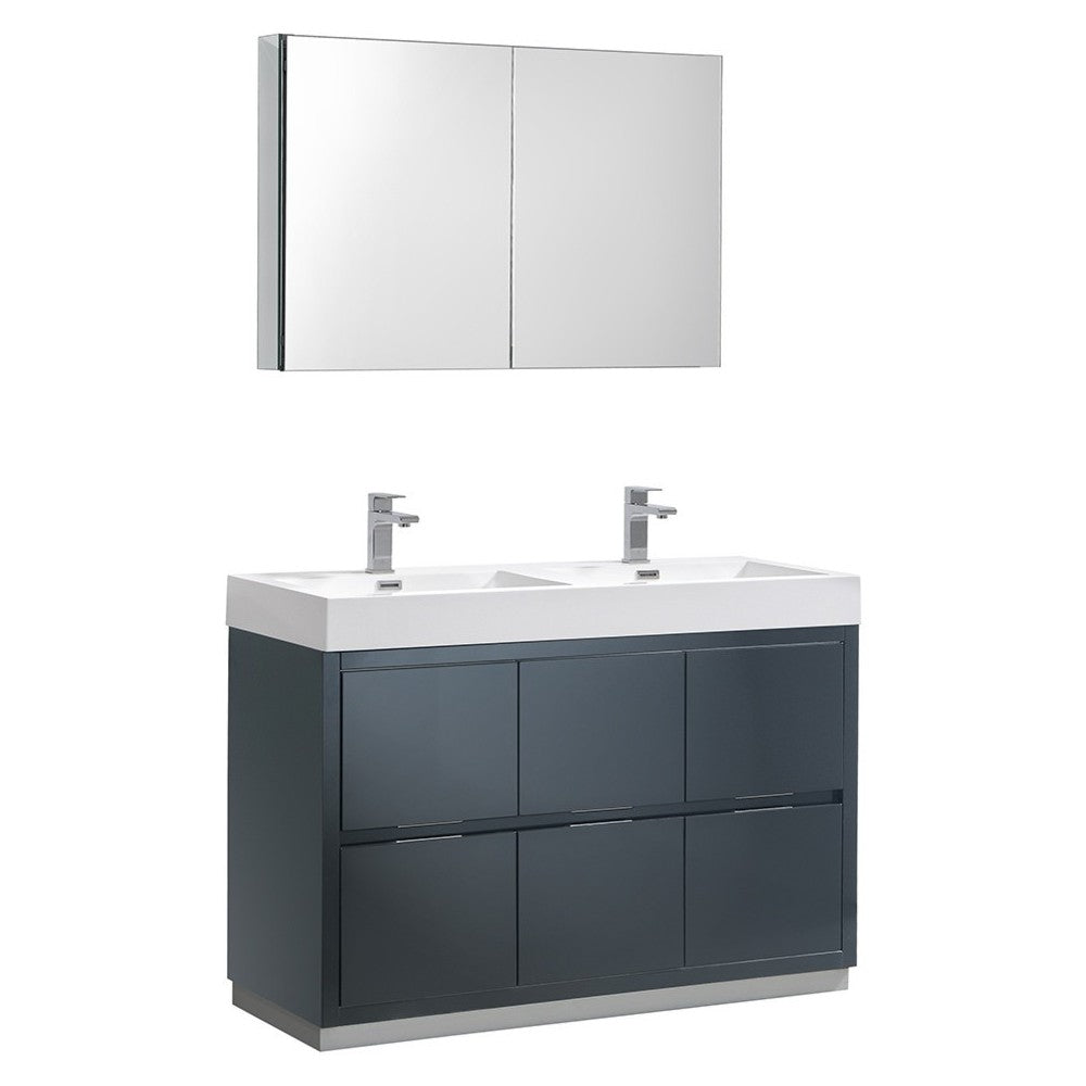 48 Dark Slate Gray Free Standing Double Sink Bathroom Vanity w/ Medicine Cabinet
