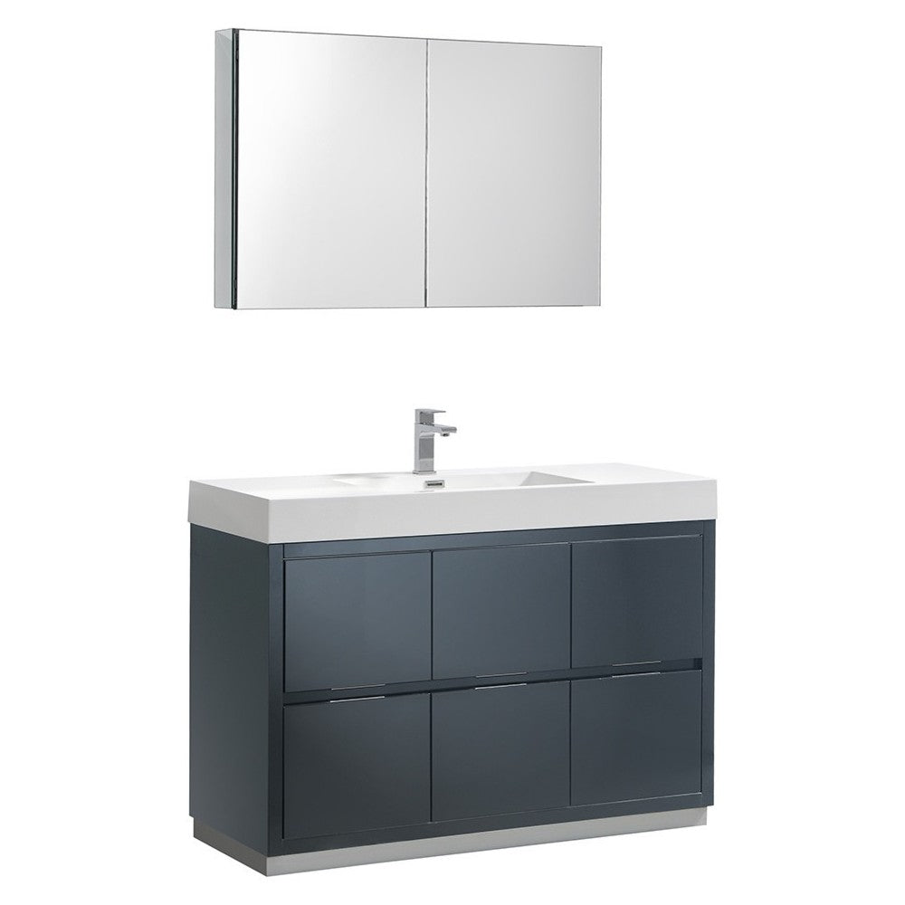 48 Dark Slate Gray Free Standing Modern Bathroom Vanity w/ Medicine Cabinet
