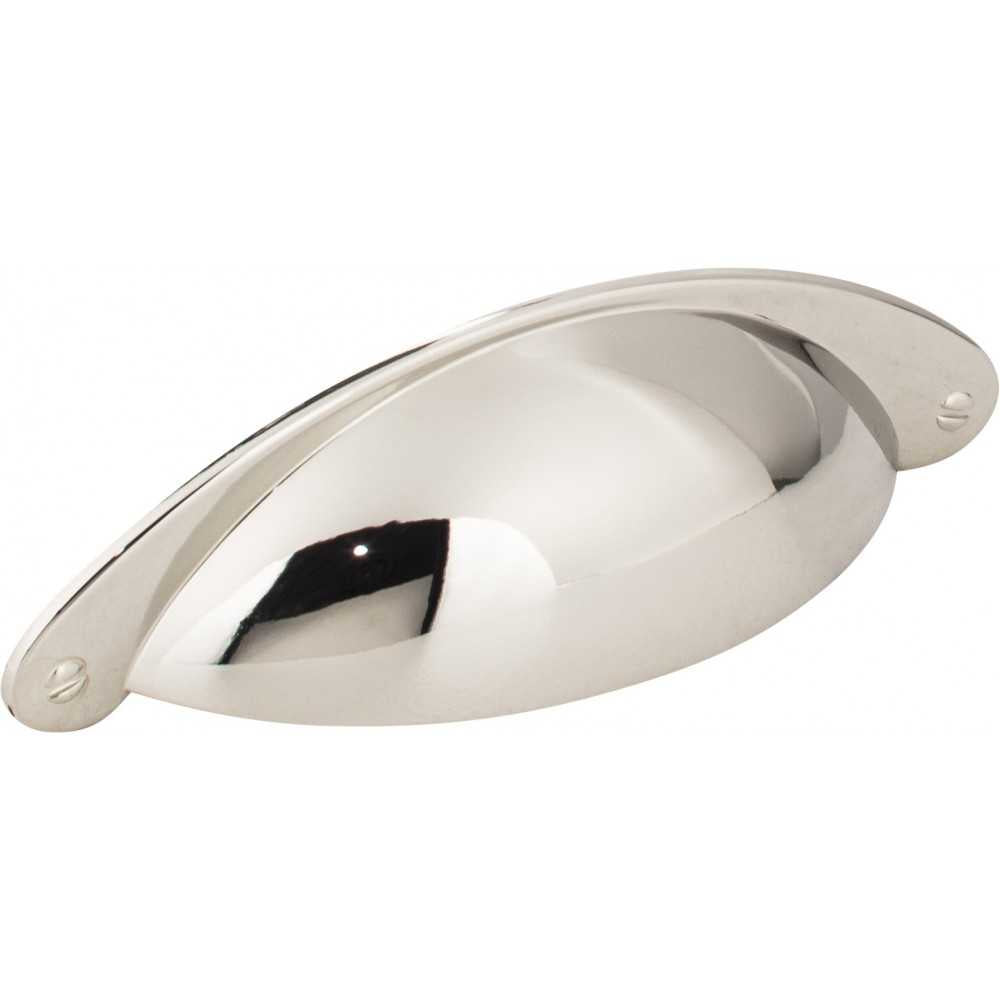 - 4-15/16" Overall Length Shaker Cabinet Cup Pull. Holes are 3" center-to-center. Packaged with two 8-32 x 1" and two Break-away screws. Finish: Polished Nickel